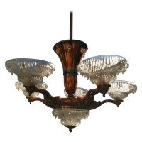 French Art Deco Chandelier with the Original Opaque Moulded Icicle Glass Shades