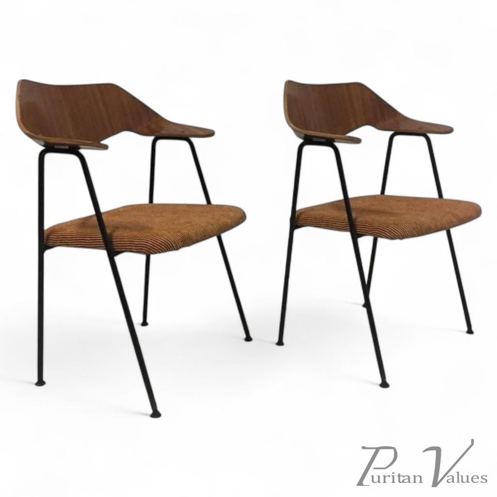 A design that has truly stood the test of time, the 675 chair is one of the most recognised of the 20th century and in 2015 was awarded the prestigious Design Guild Mark Award. Originally created in 1952. Pioneering at the time, Robin day overcame the difficulty of forming a single molded plywood chair with armrests, by creating a bent shape using a singular curve rather than the obvious double curve. H 31", W 25", D 18".