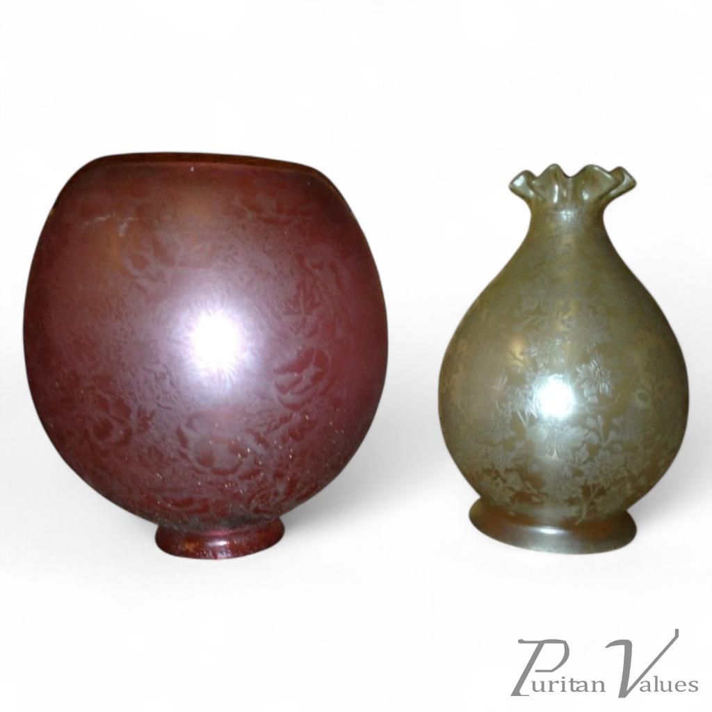 Victorian Cranberry Acid-Etched Globe Shade and Opal Etched Tulip Shade c.1890