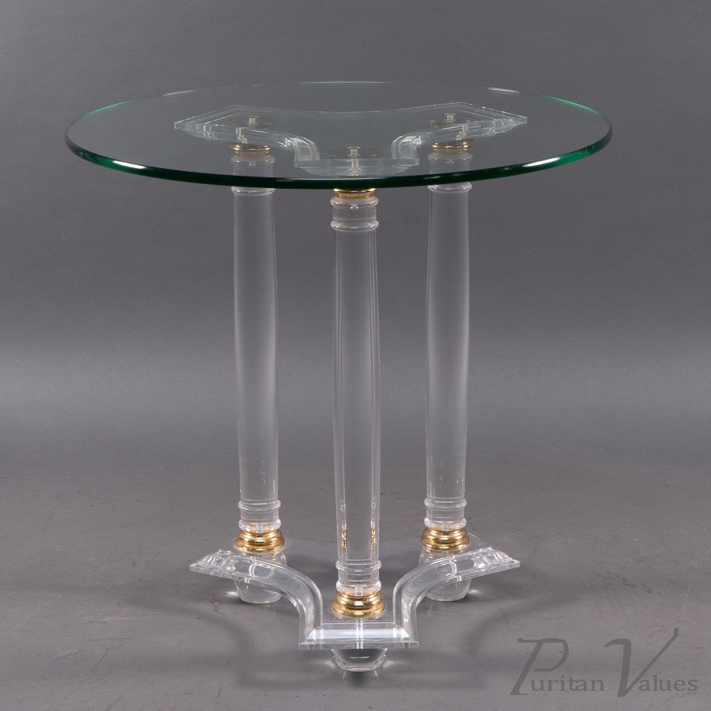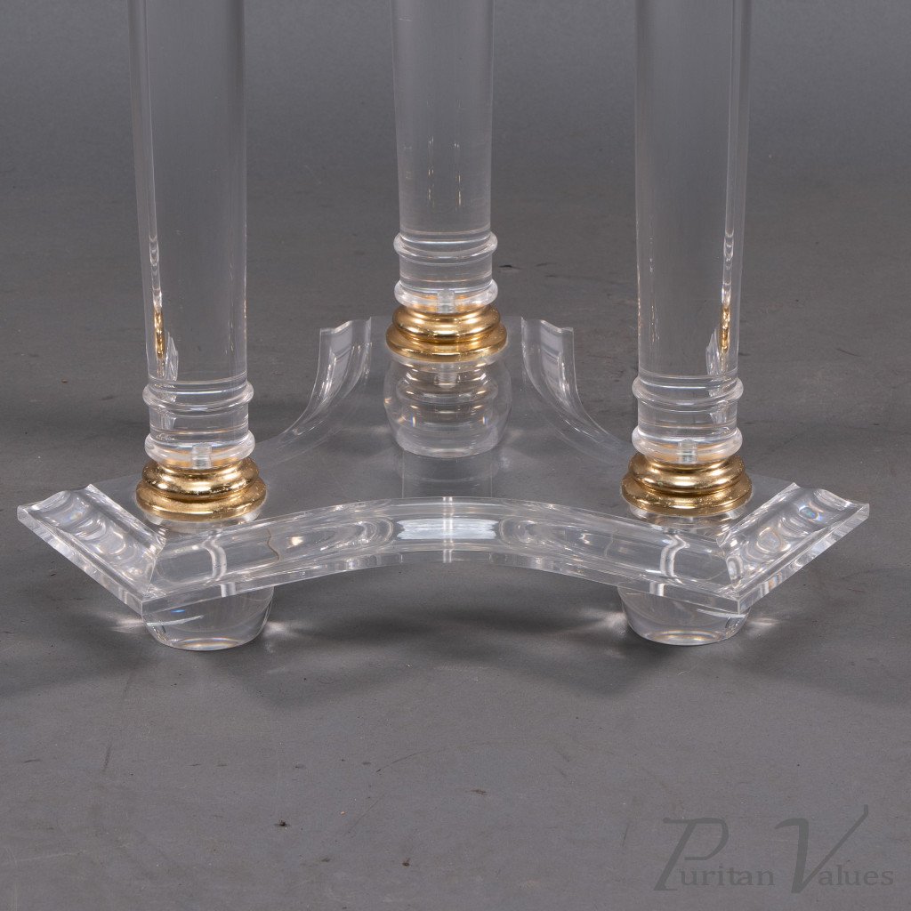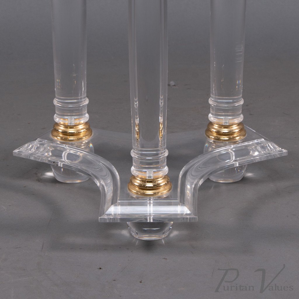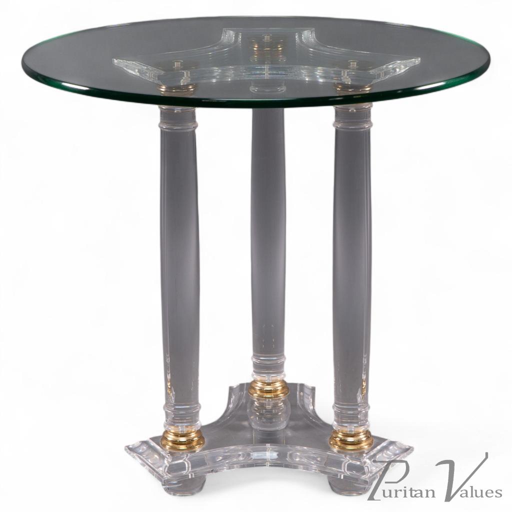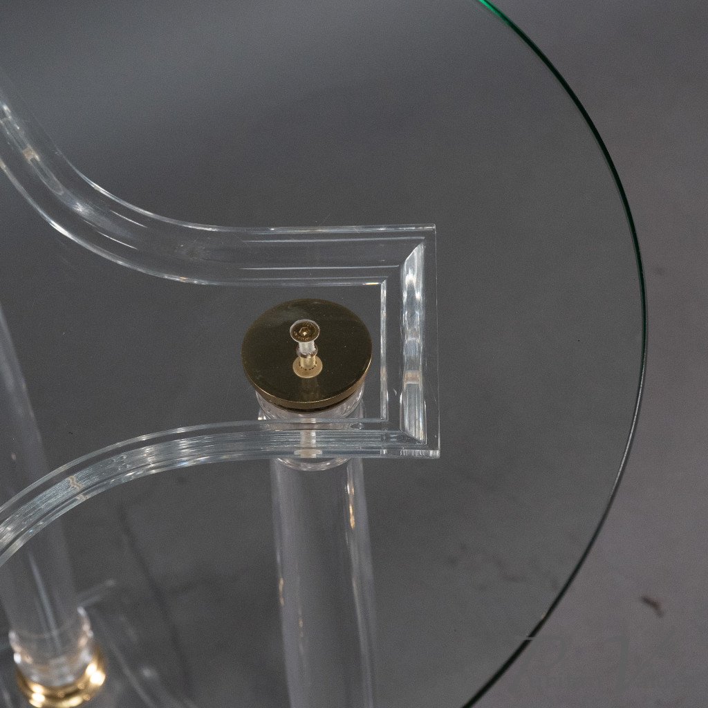 A French Mid-Century Modern Circular Lucite & Brass Side Table
