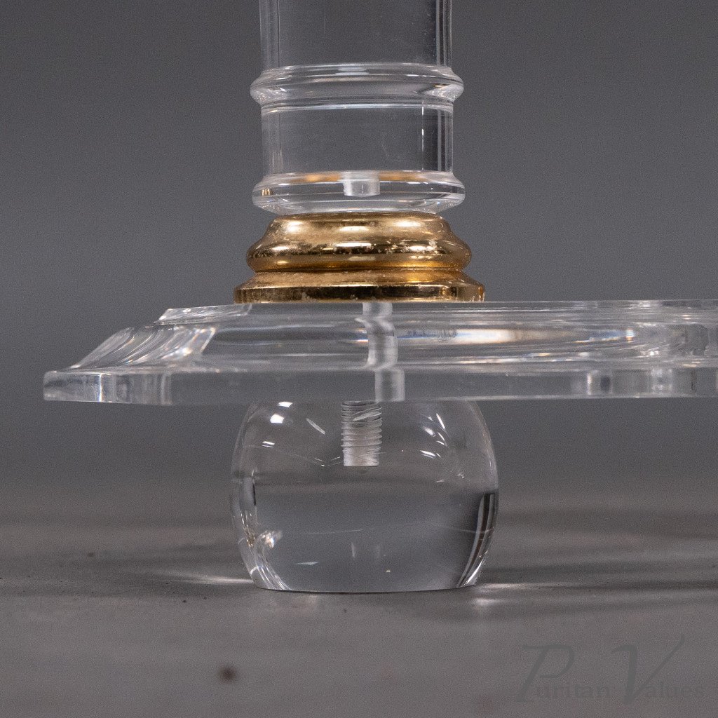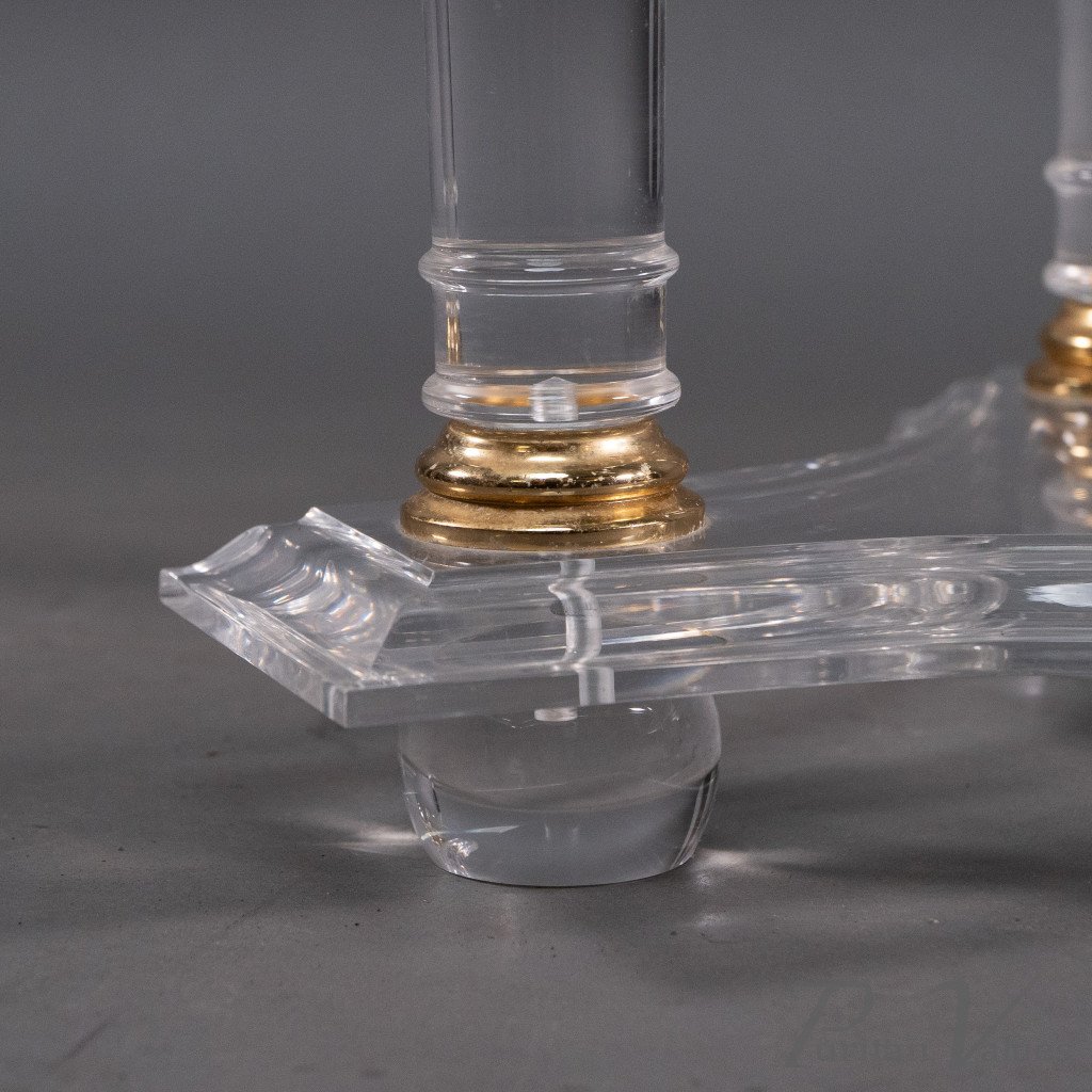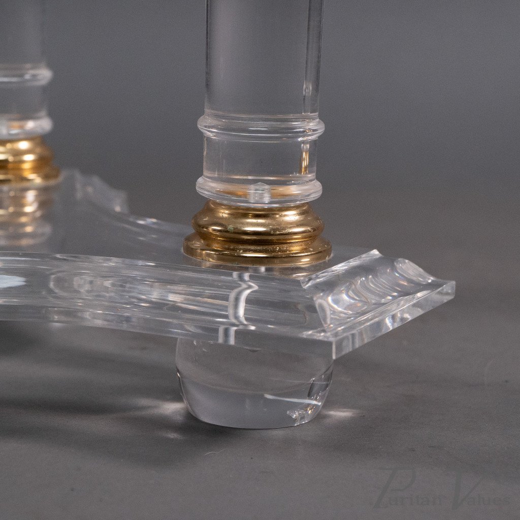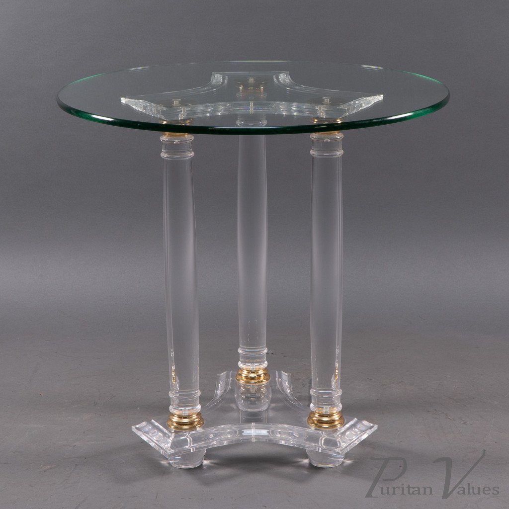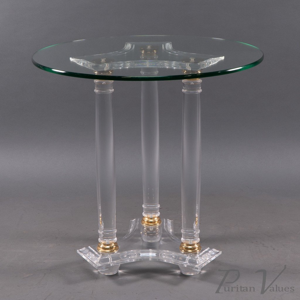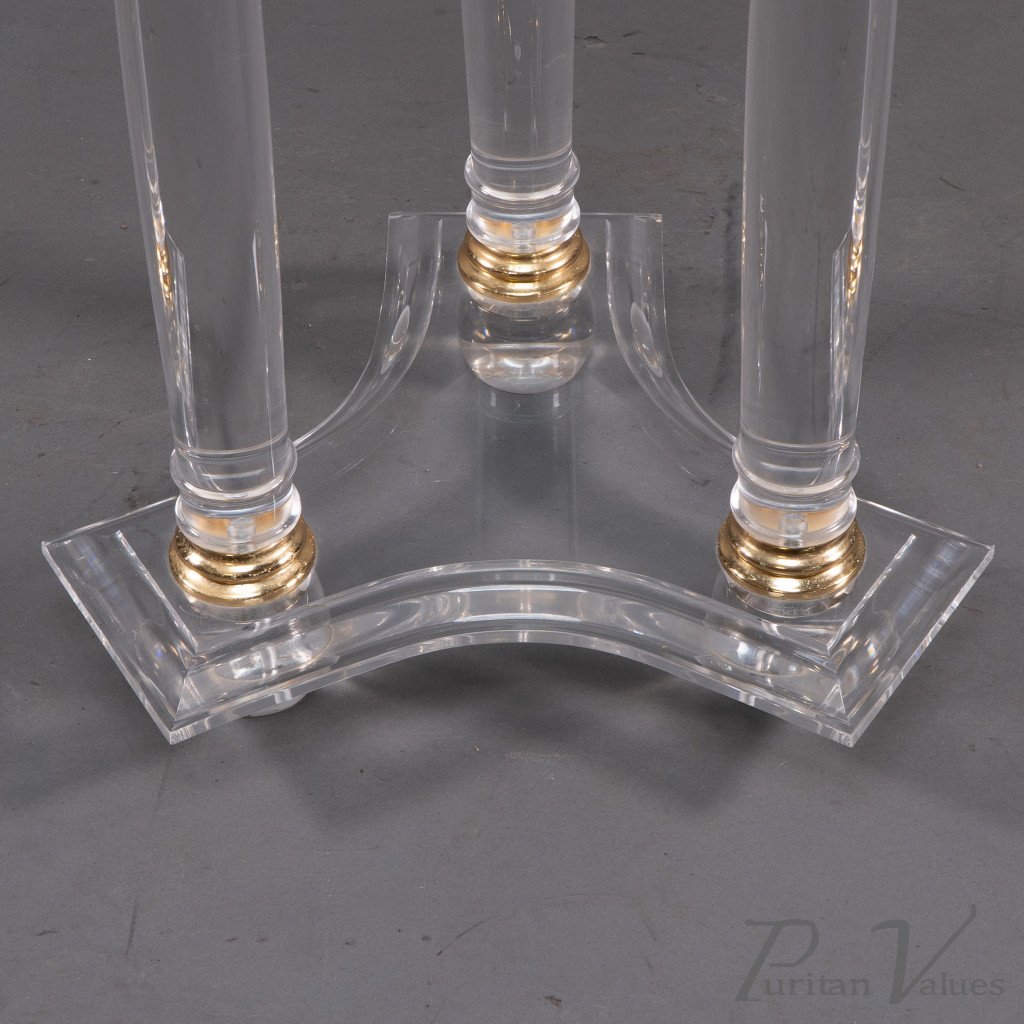 A French Mid-Century Modern Circular Lucite & Brass Side Table