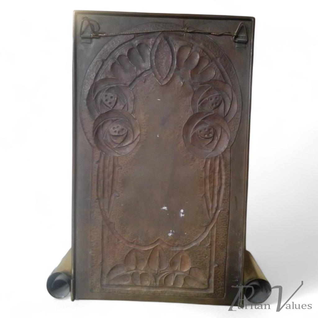 Margret Gilmour Attributed, A Glasgow School brass candle sconce with stylised Glasgow Roses and scroll details to the lower sides.