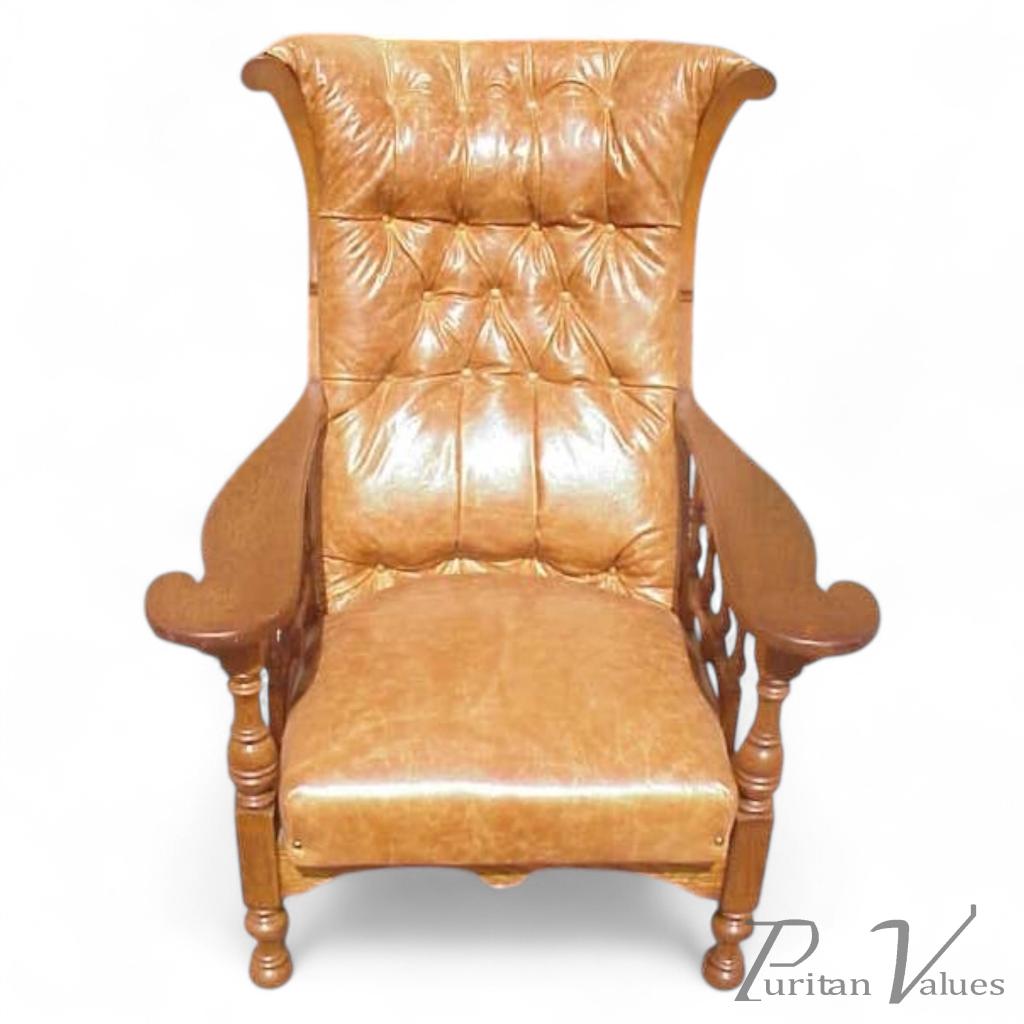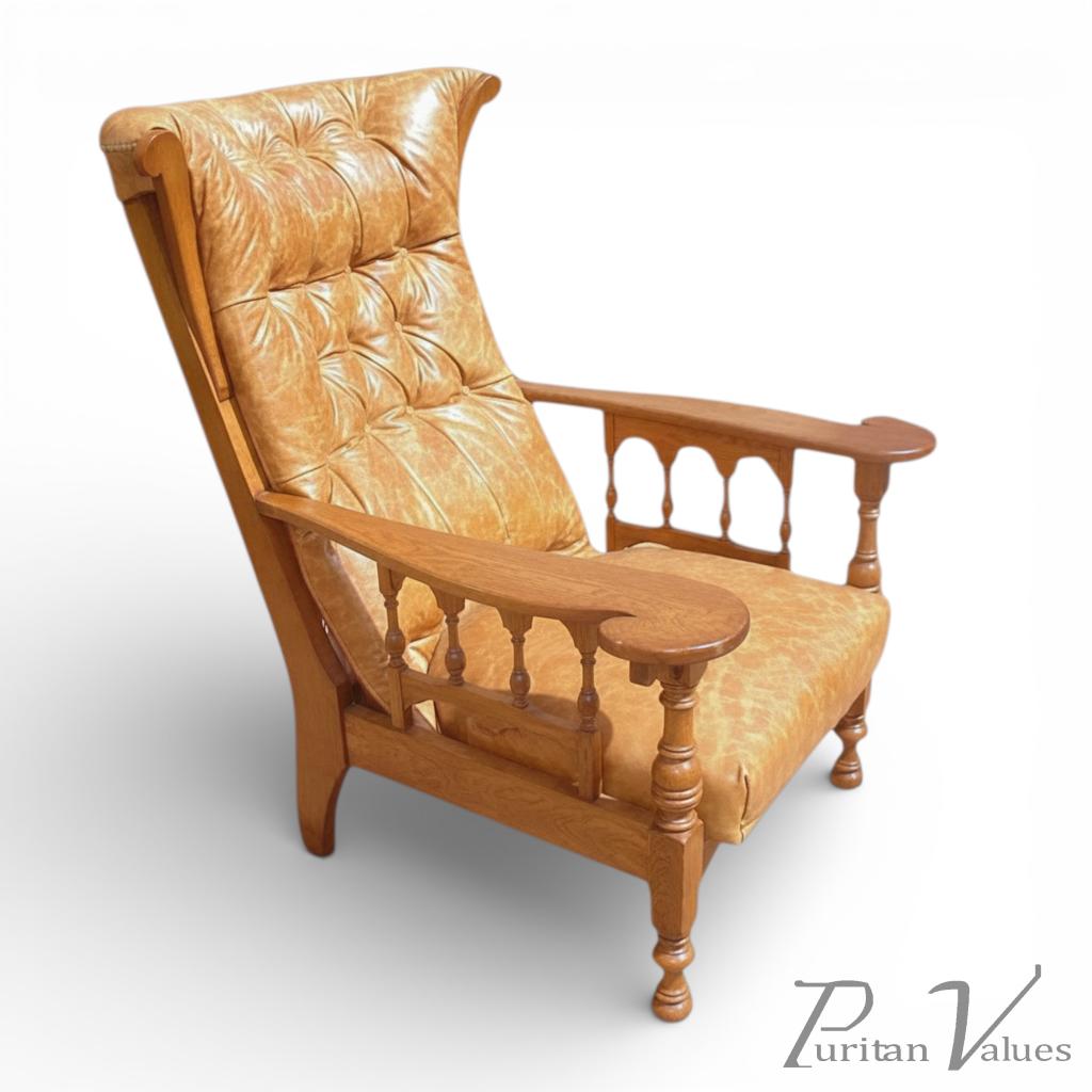 of generous proportions, professionally reupholstered in a quality hide. This one is sold, but I have another one in stock ready for the upholstery. My upholsterer did the one in the images.