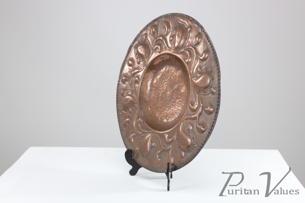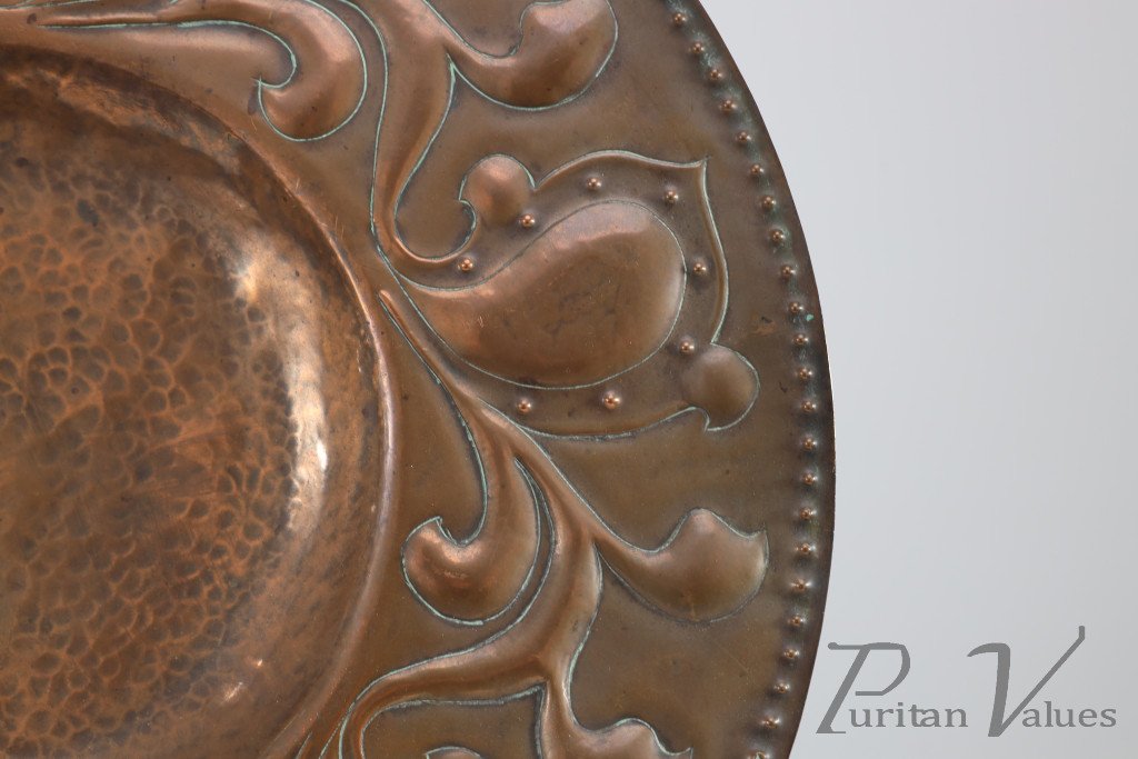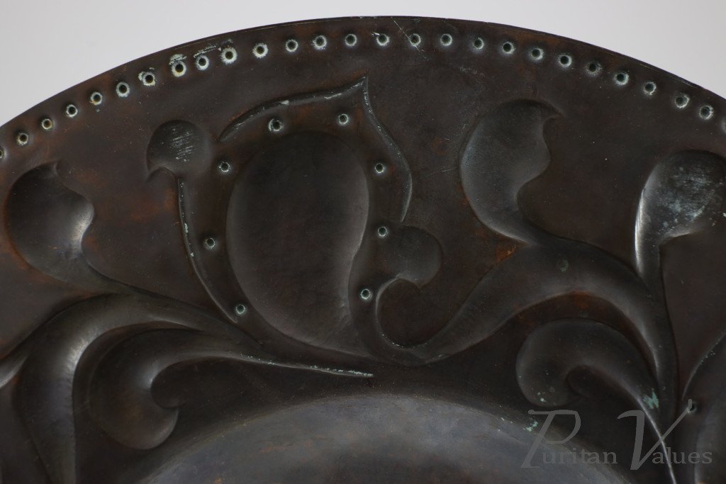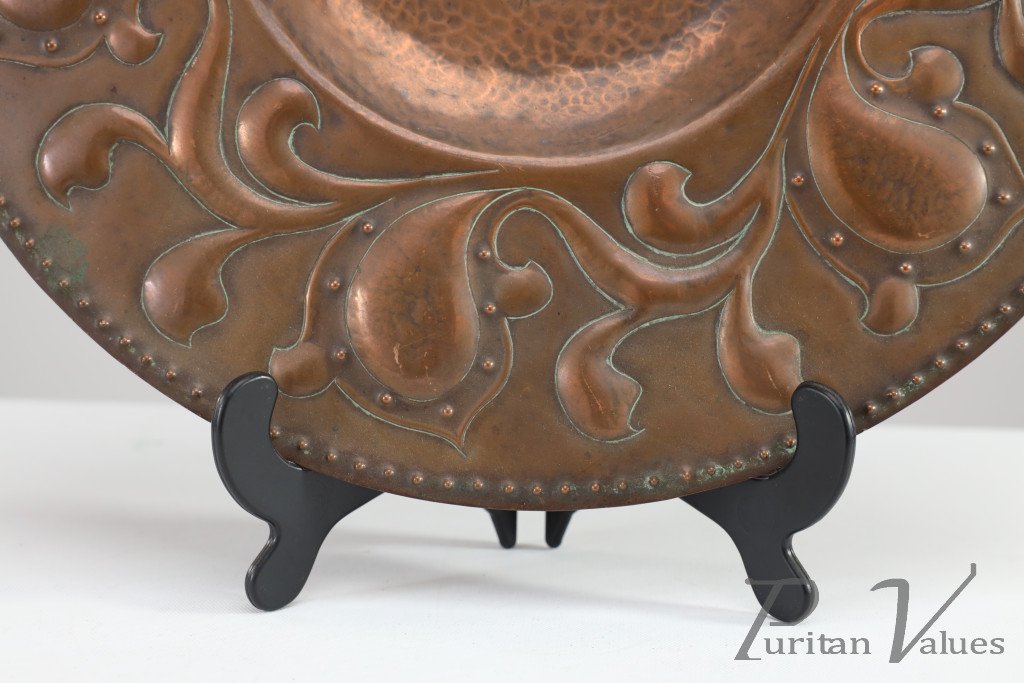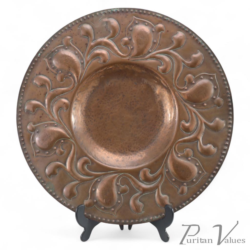 Arts and Crafts Copper Wall Plate – Repoussé Floral with Rivet Dots