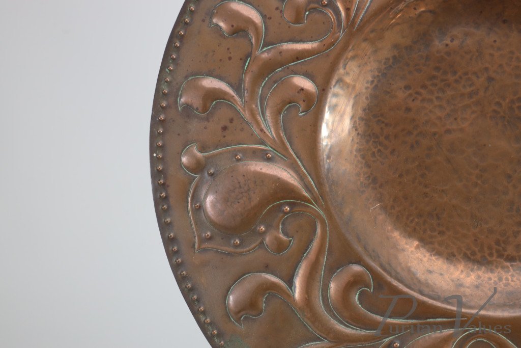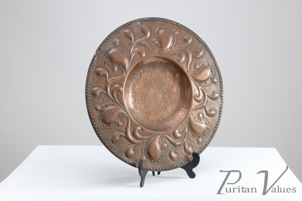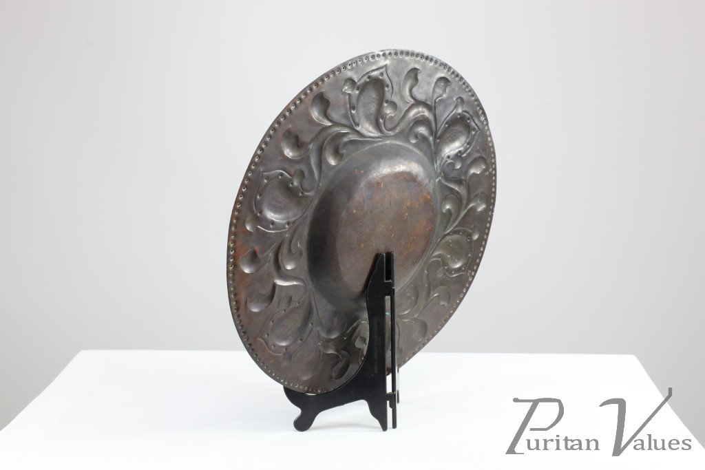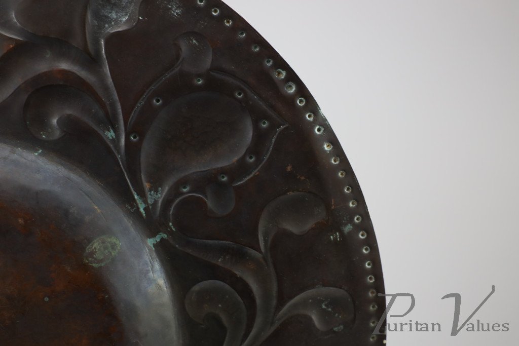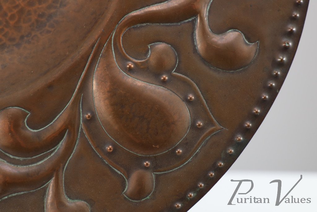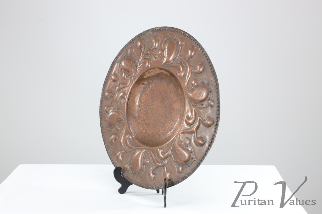 Arts and Crafts Copper Wall Plate – Repoussé Floral with Rivet Dots