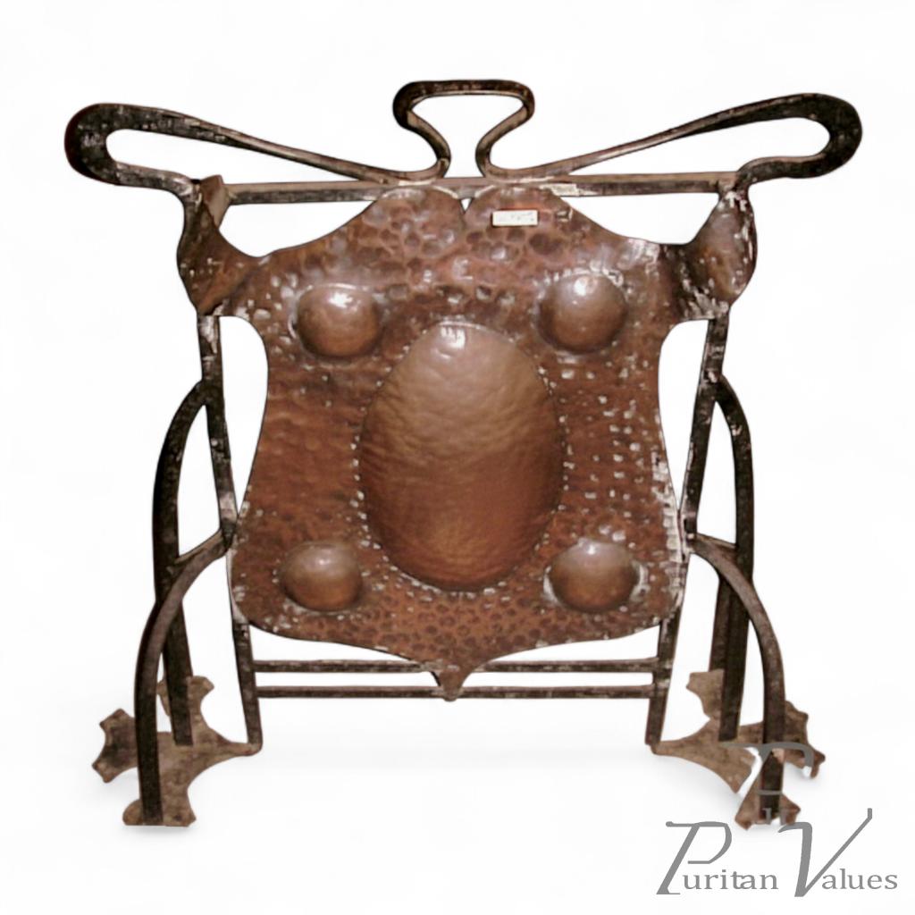 A Handwrought Iron & Copper Fire Screen with Stylised Repousse Details