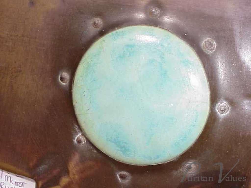 A large Arts and Crafts copper mirror with six large Ruskin roundel's.
