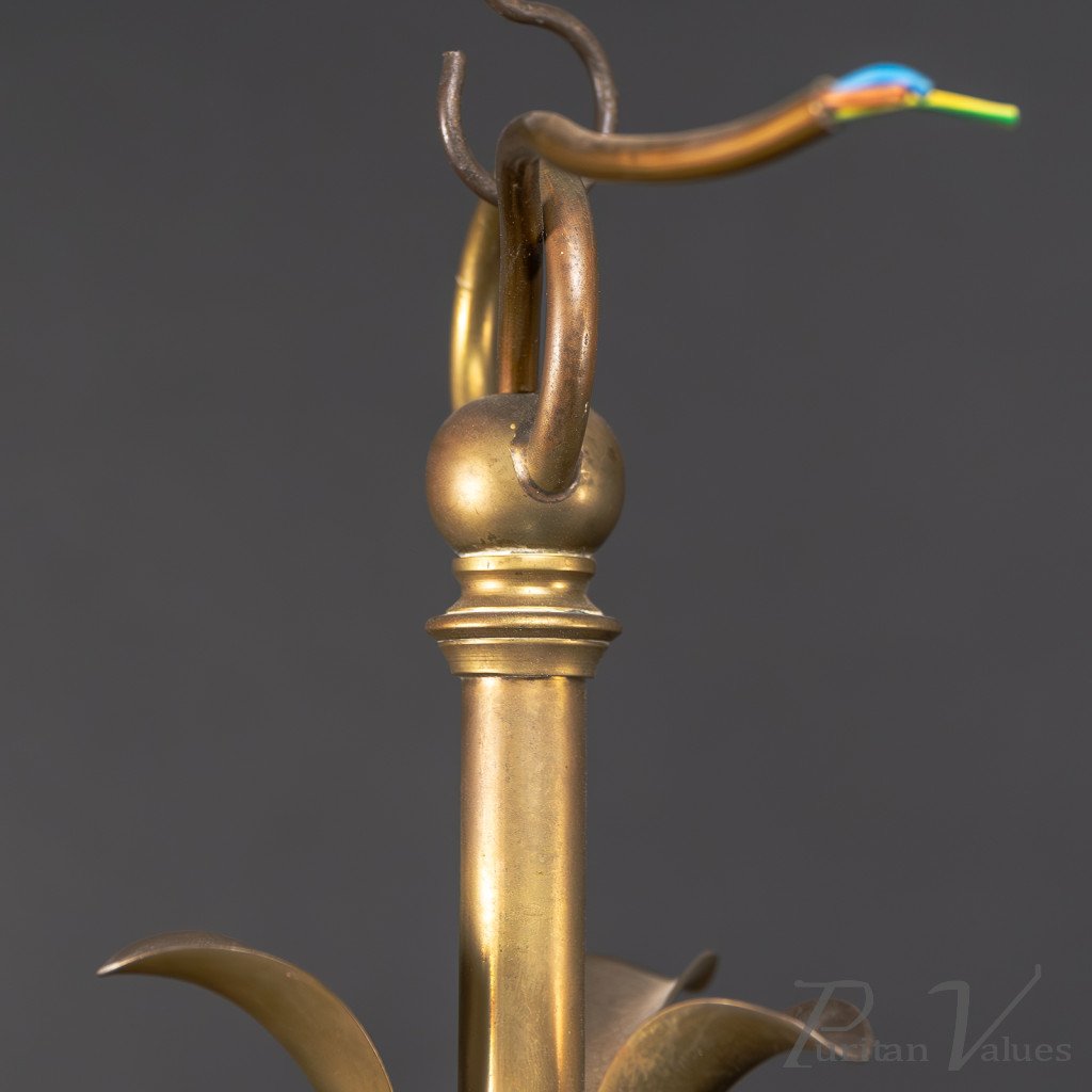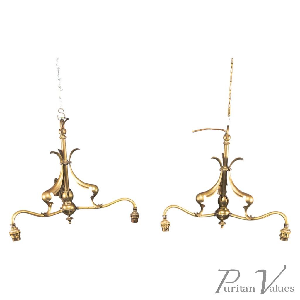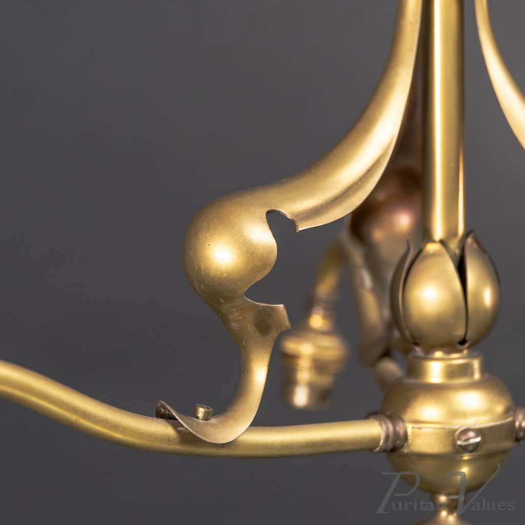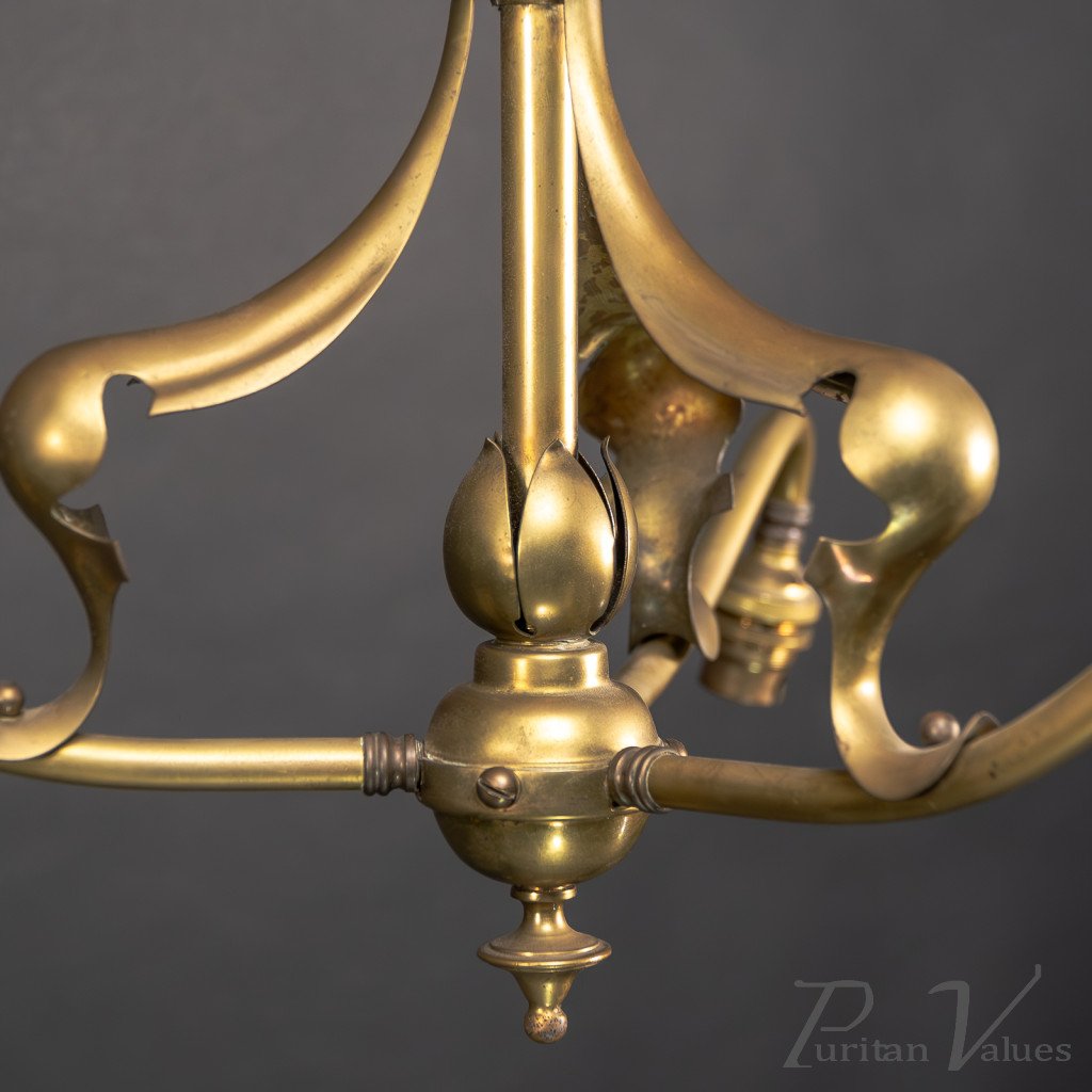 Arts and Crafts – Pair of Brass Three-Branch Ceiling Lights, c.1900