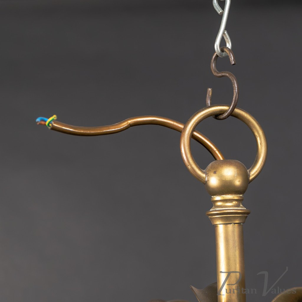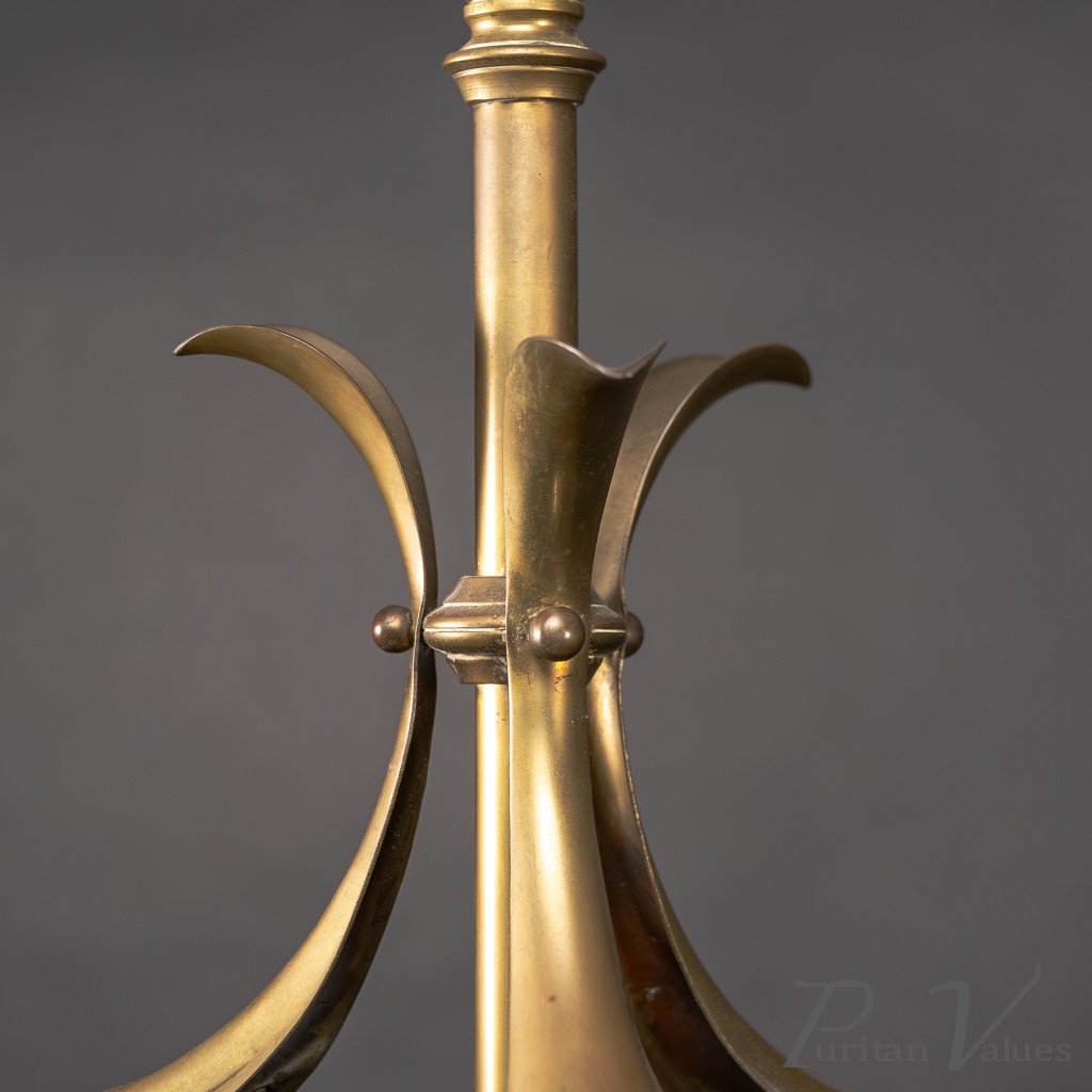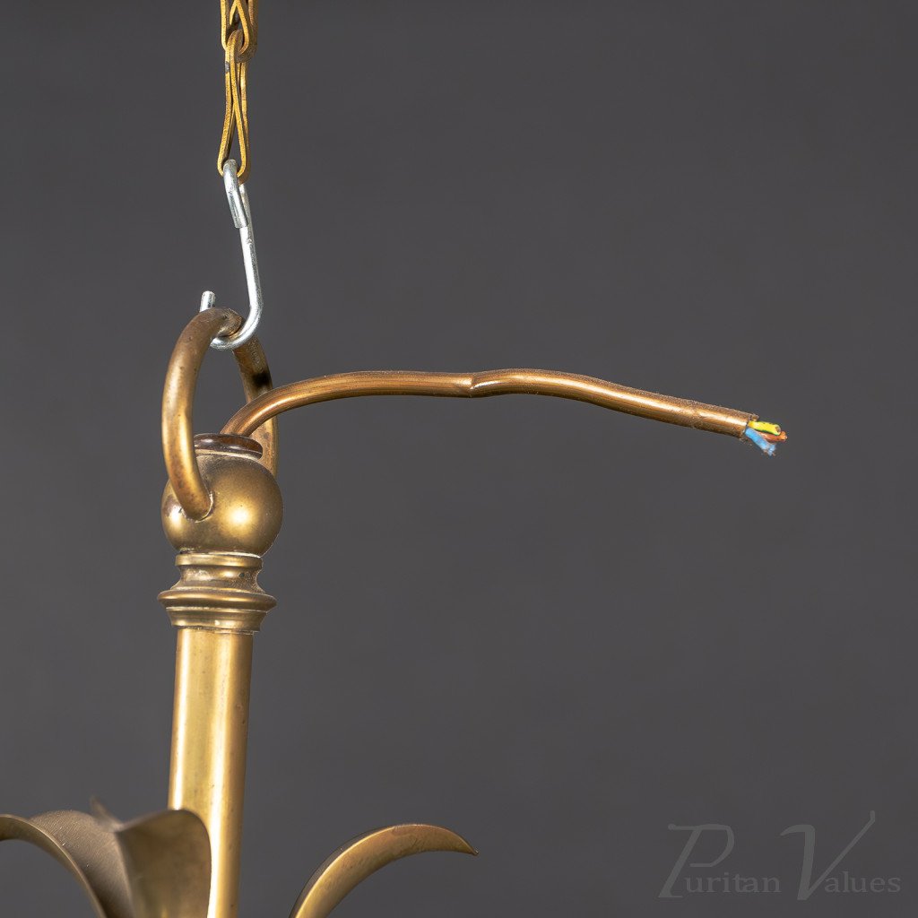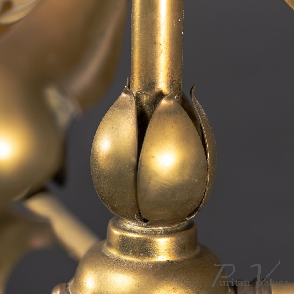 Arts and Crafts – Pair of Brass Three-Branch Ceiling Lights, c.1900
