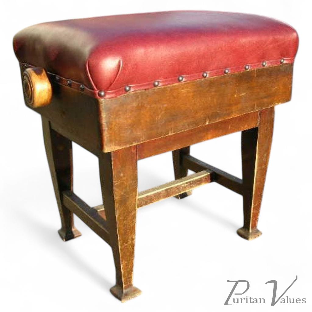 A Pair of Arts and Crafts Adjustable Walnut Piano Stools.