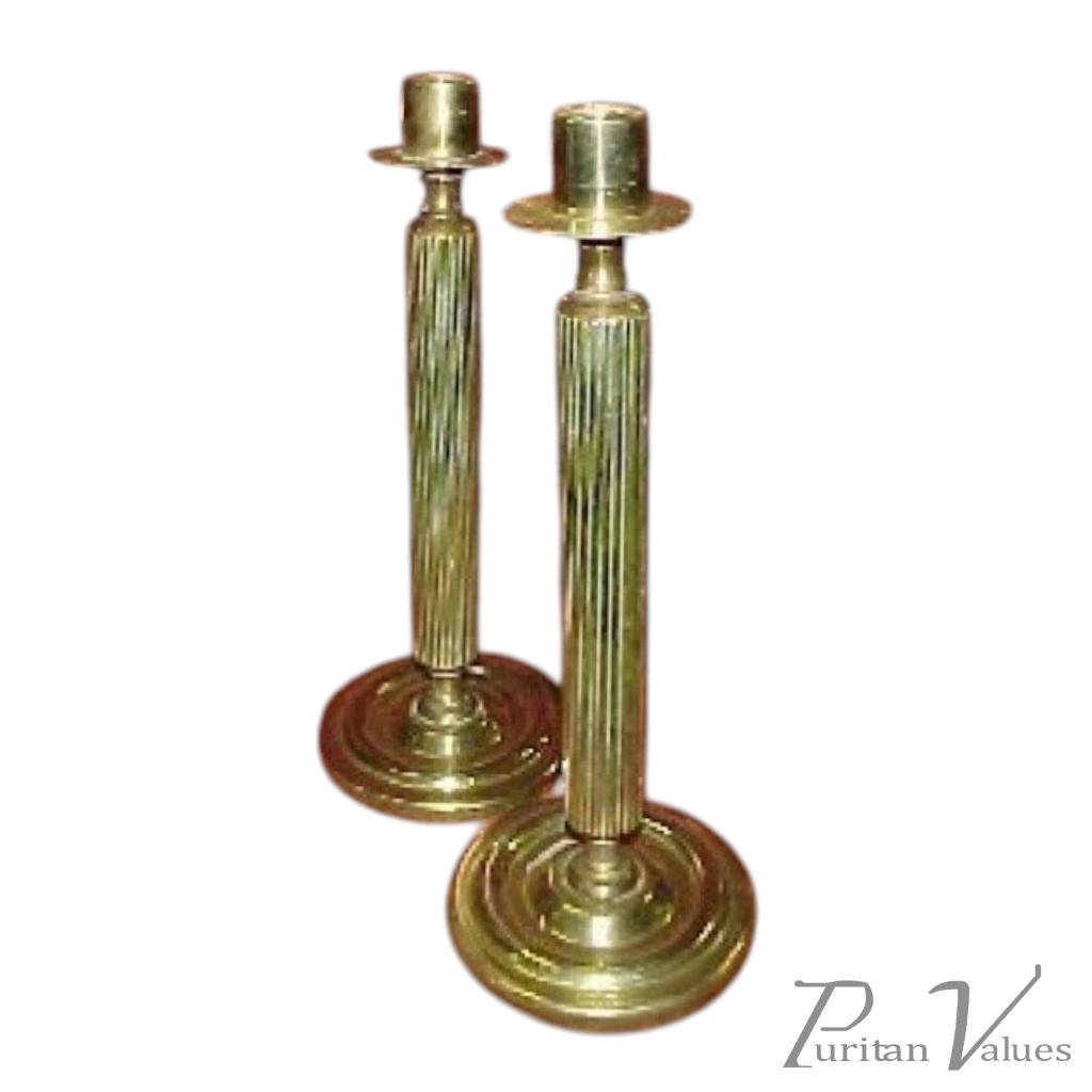 A Pair of Fluted Arts & Crafts Brass Candlesticks