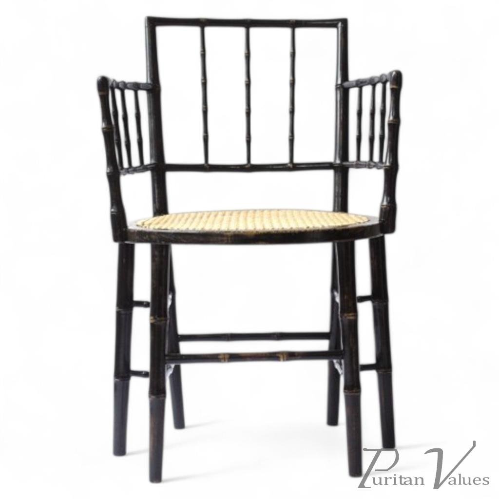 A very rare six leg cane seated armchair designed by R. Edis. It would seem that this chair may have been an experimental chair and although it follows closely Edis original four leg version it is quite a design achievement in it's overall form and very functional. Circa 1880.