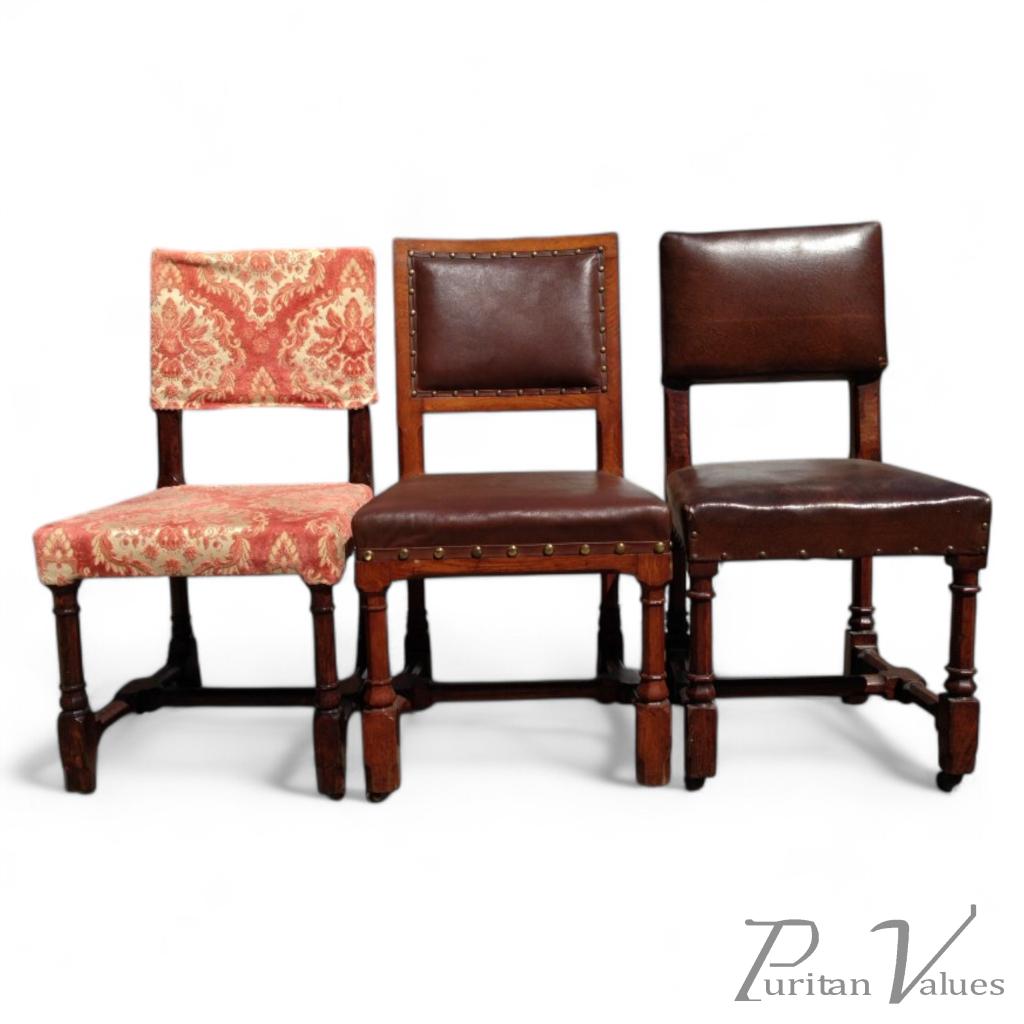 The first line of images show one chair from each set together for comparison. I will sell as separate sets.