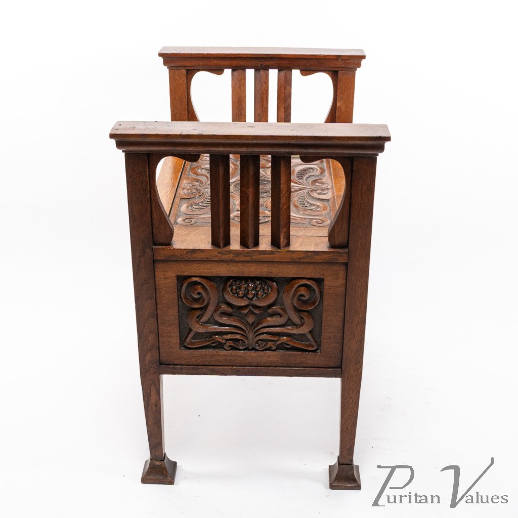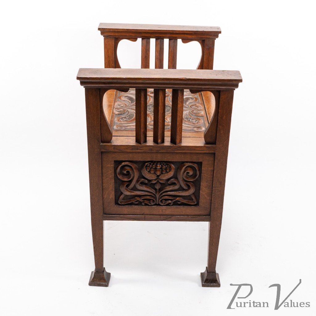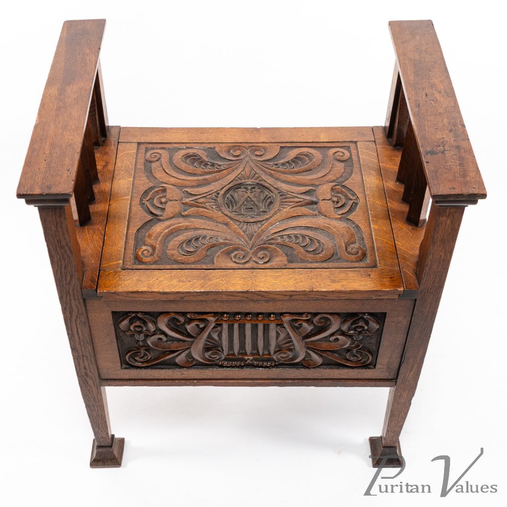 A. W. Simpson, attributed. Arts & Crafts Oak Piano Stool with Carved Floral Decoration