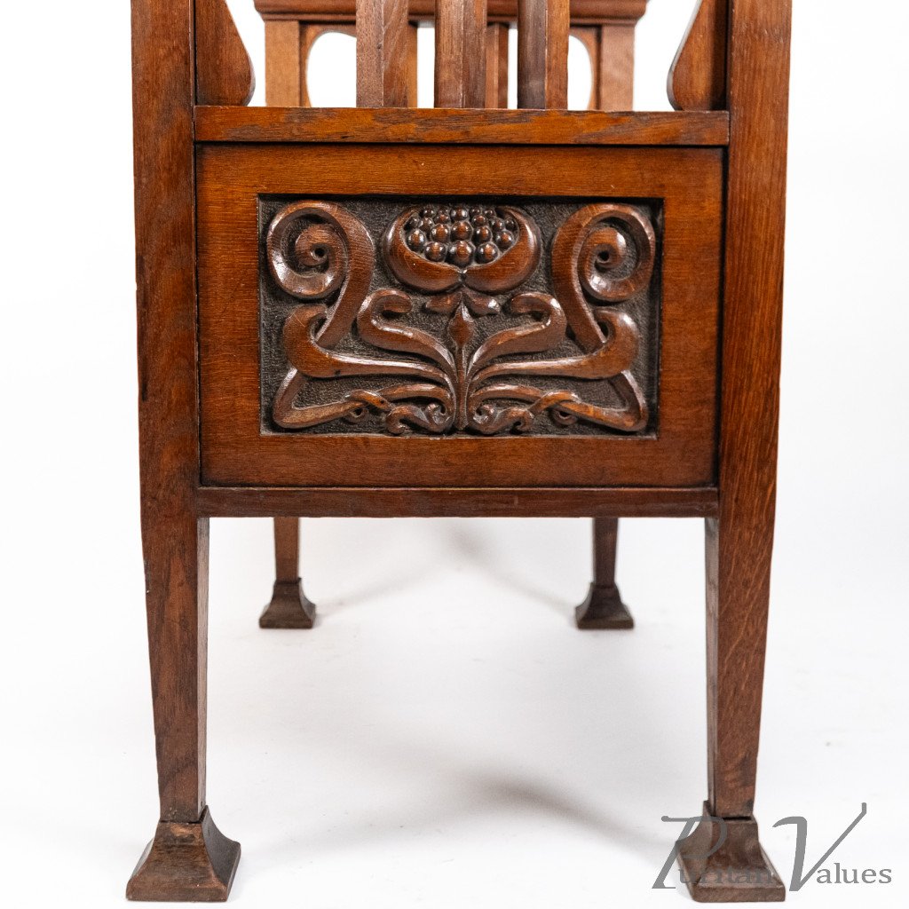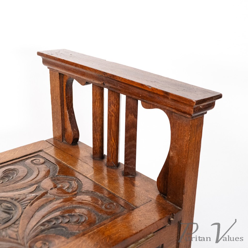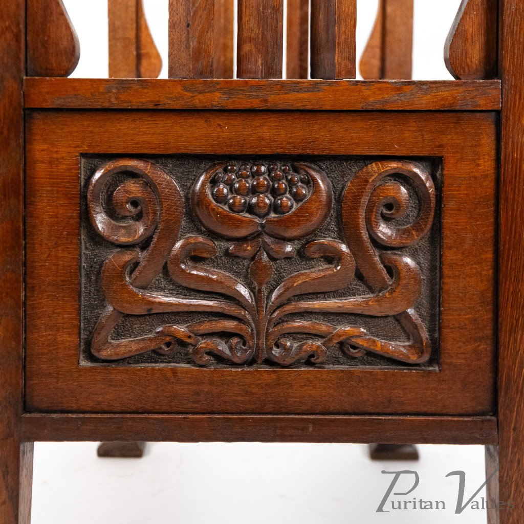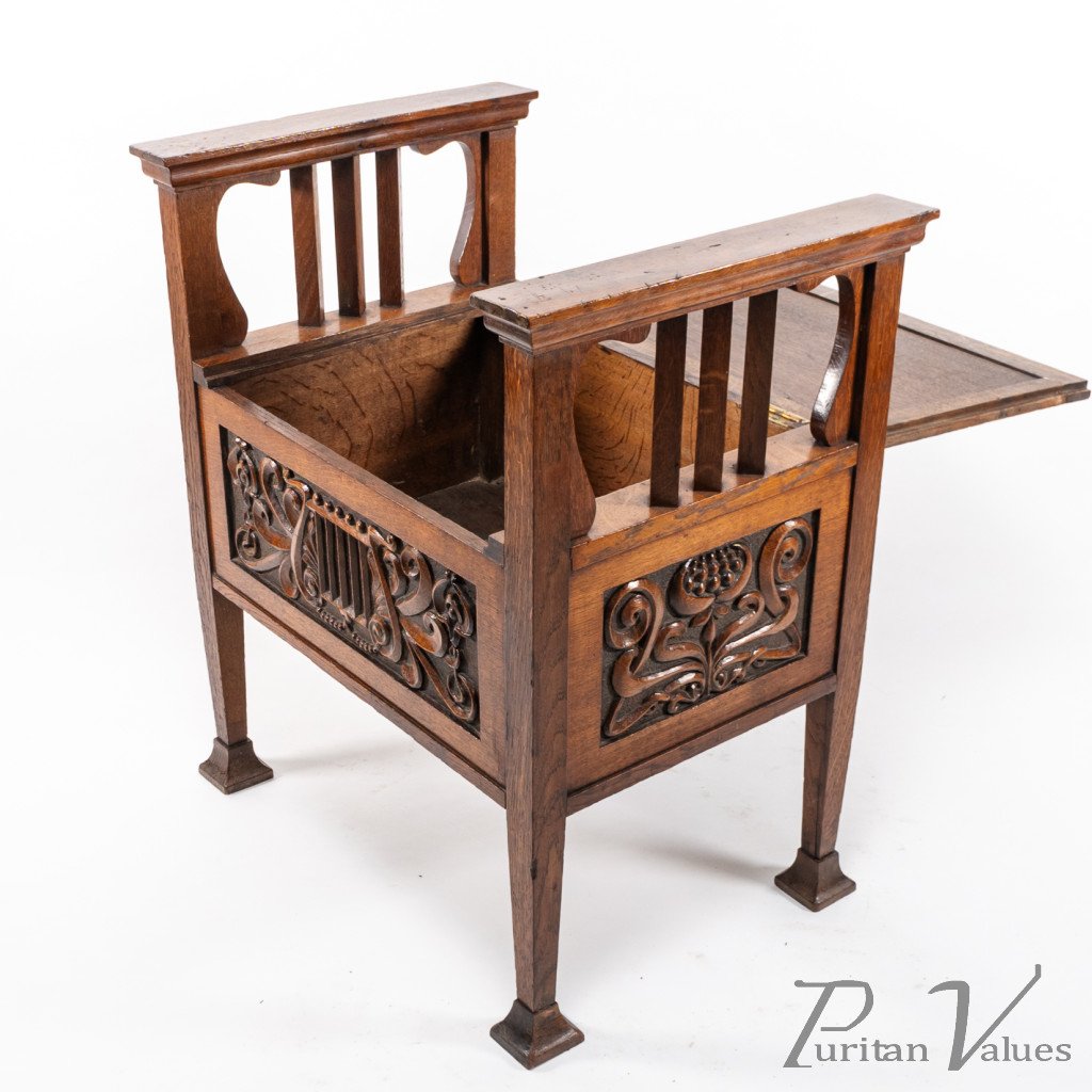 A. W. Simpson, attributed. Arts & Crafts Oak Piano Stool with Carved Floral Decoration