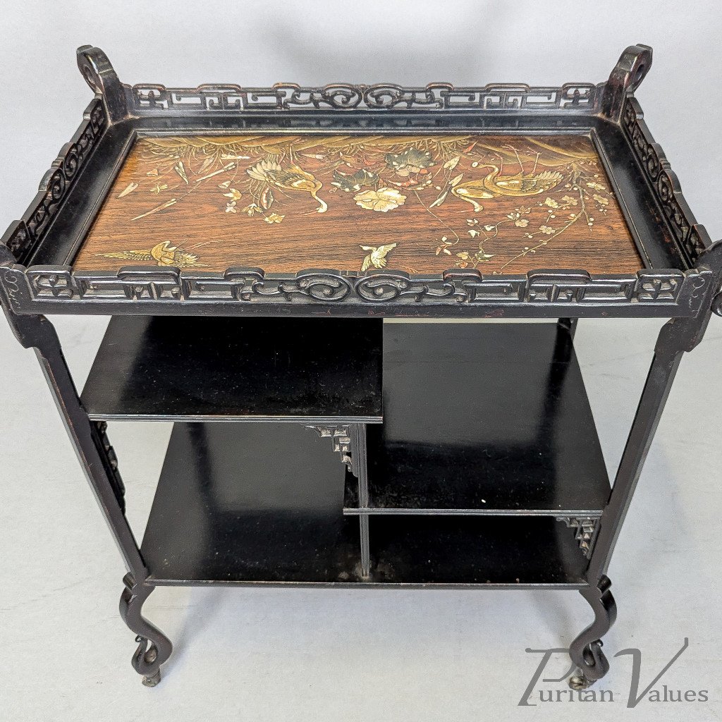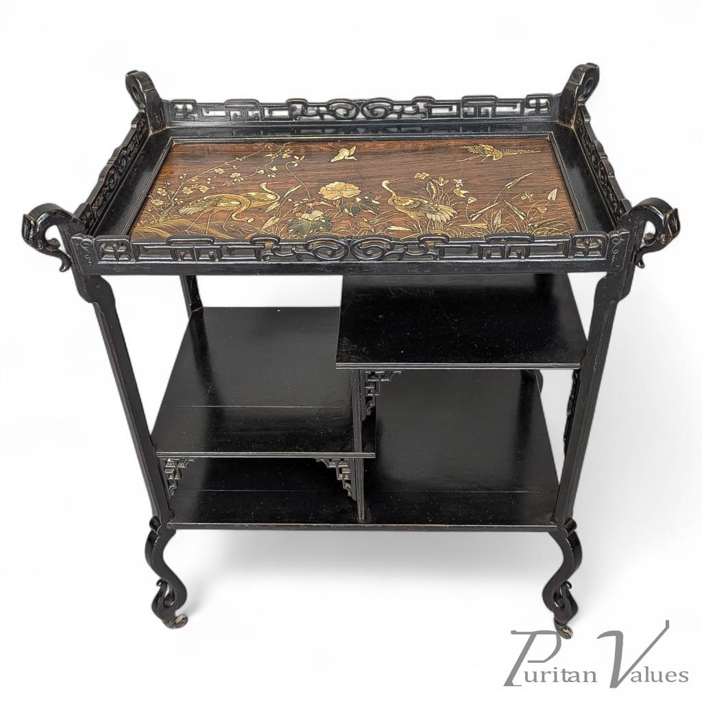 Aesthetic Movement Japanese Tea Trolley with River Scene Decoration