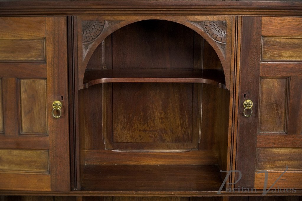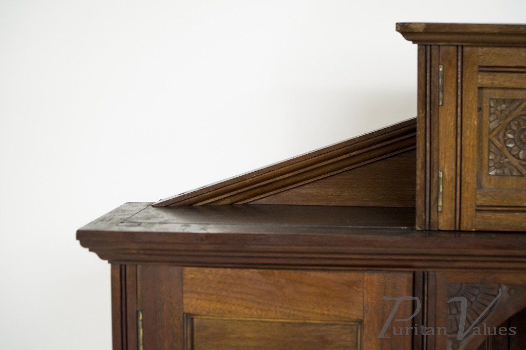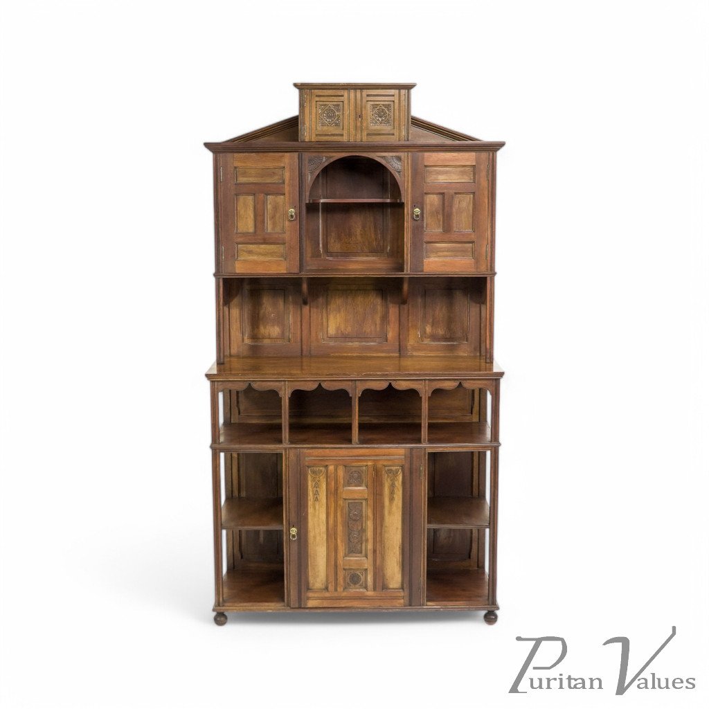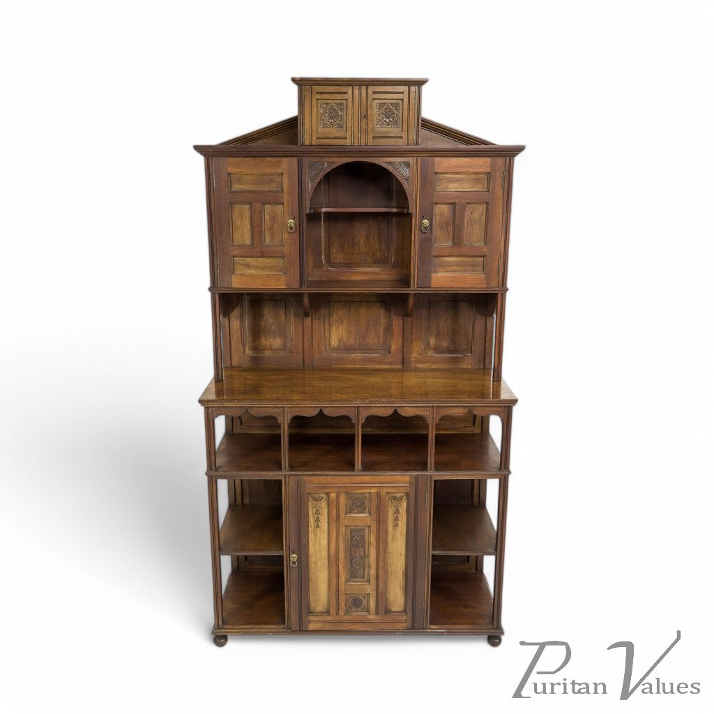 Aesthetic Movement Walnut Cabinet of Architectural Form with Carved Decoration