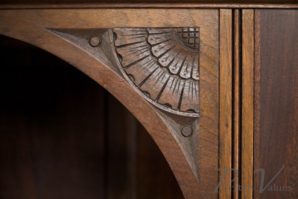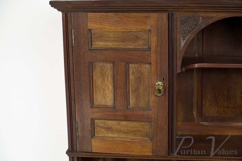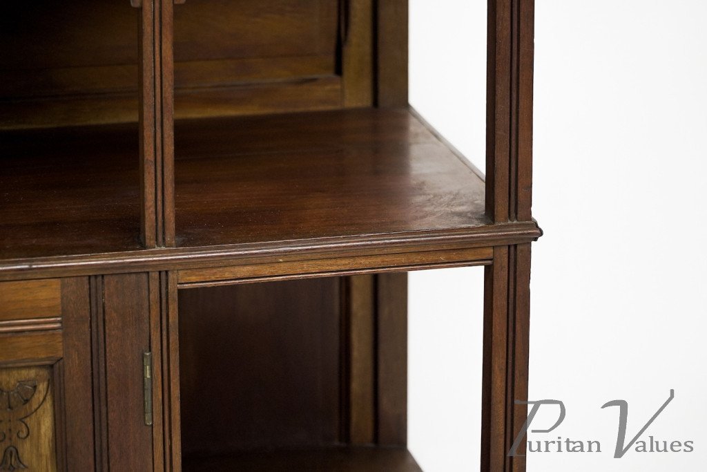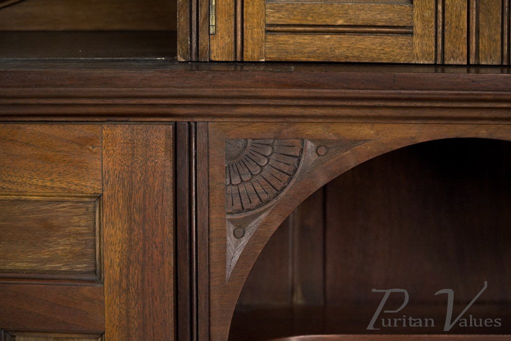 Aesthetic Movement Walnut Cabinet of Architectural Form with Carved Decoration