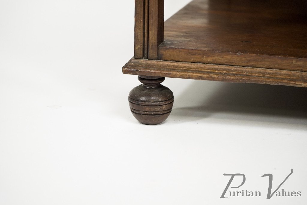 Wear consistent with age and use. There is a small loss to the left hand side of the shaped apron below the work surface shown in the second but last image.