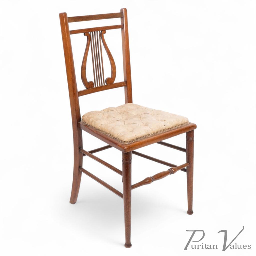 Aesthetic Movement – Walnut Lyre Back Chair with Button Seat (c.1890)