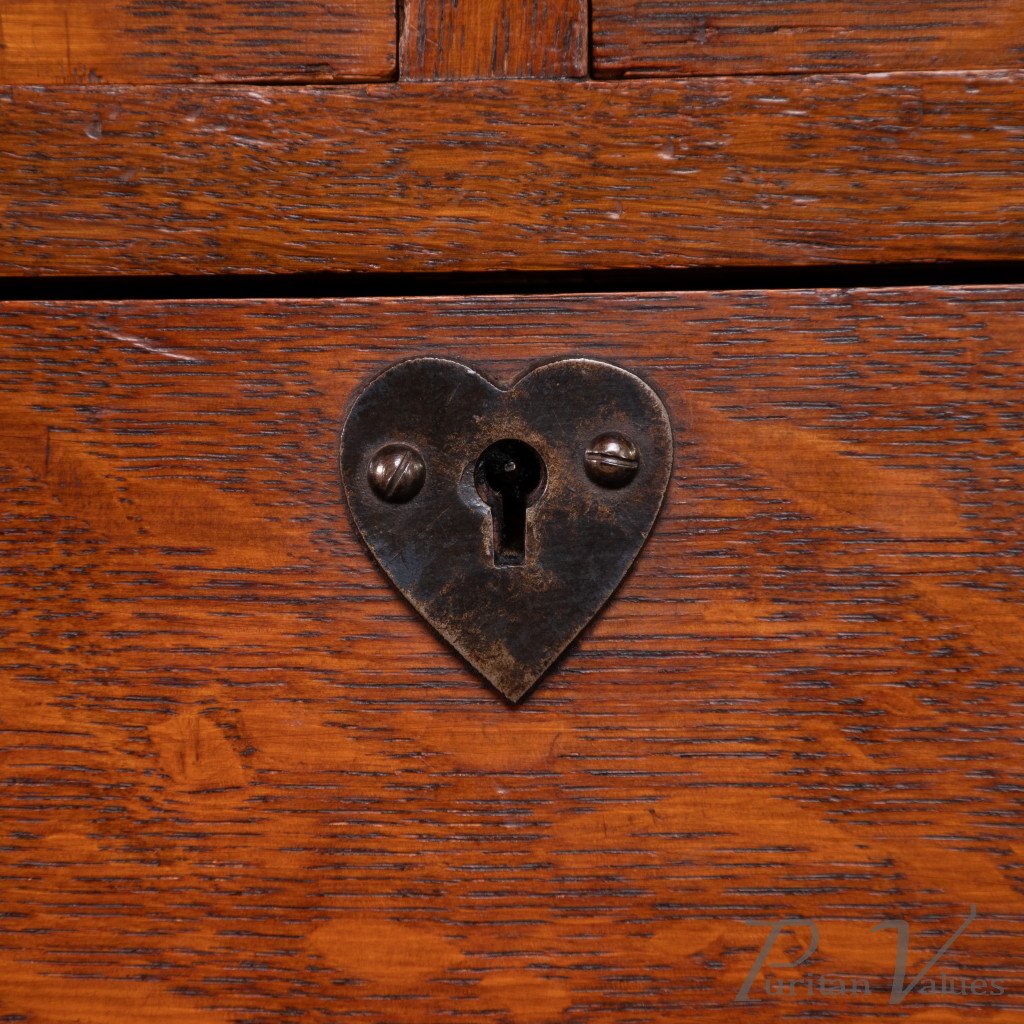 Ambrose Heal a Rare Mansfield Oak Chest of Drawers with Iron Heart Escutcheons