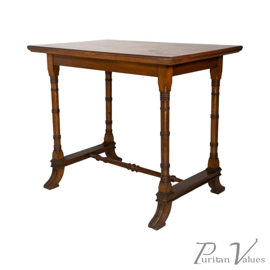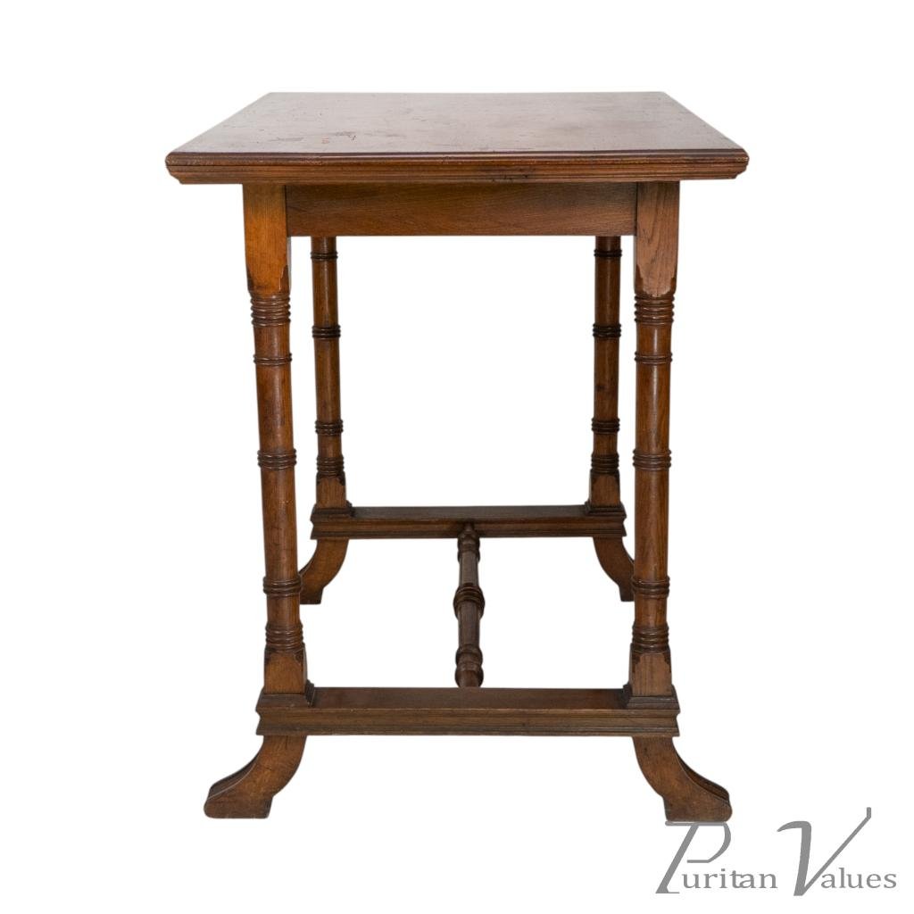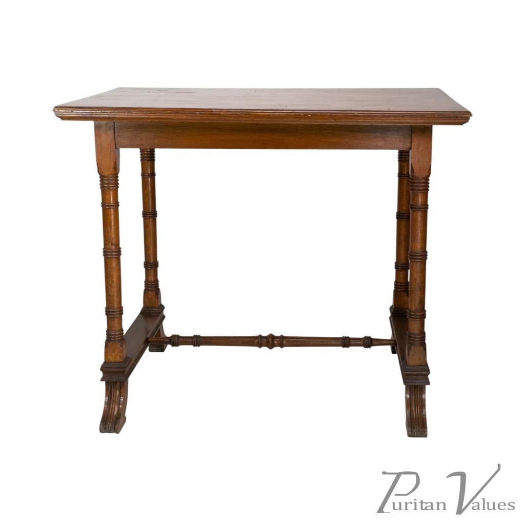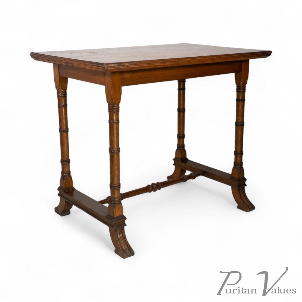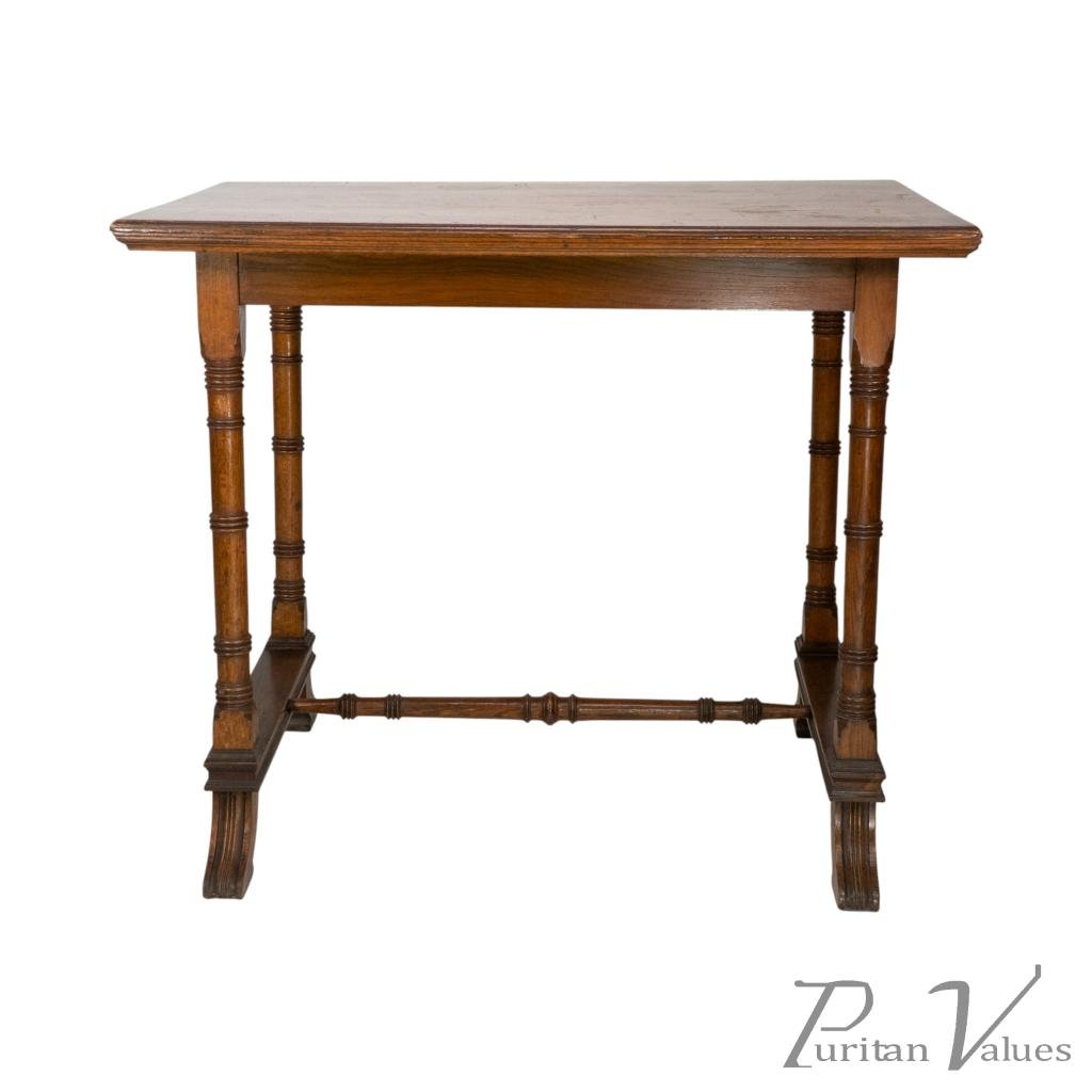 An Aesthetic Movement Oak Oblong Side Table with Ring Turned Legs, & Splayed Feet