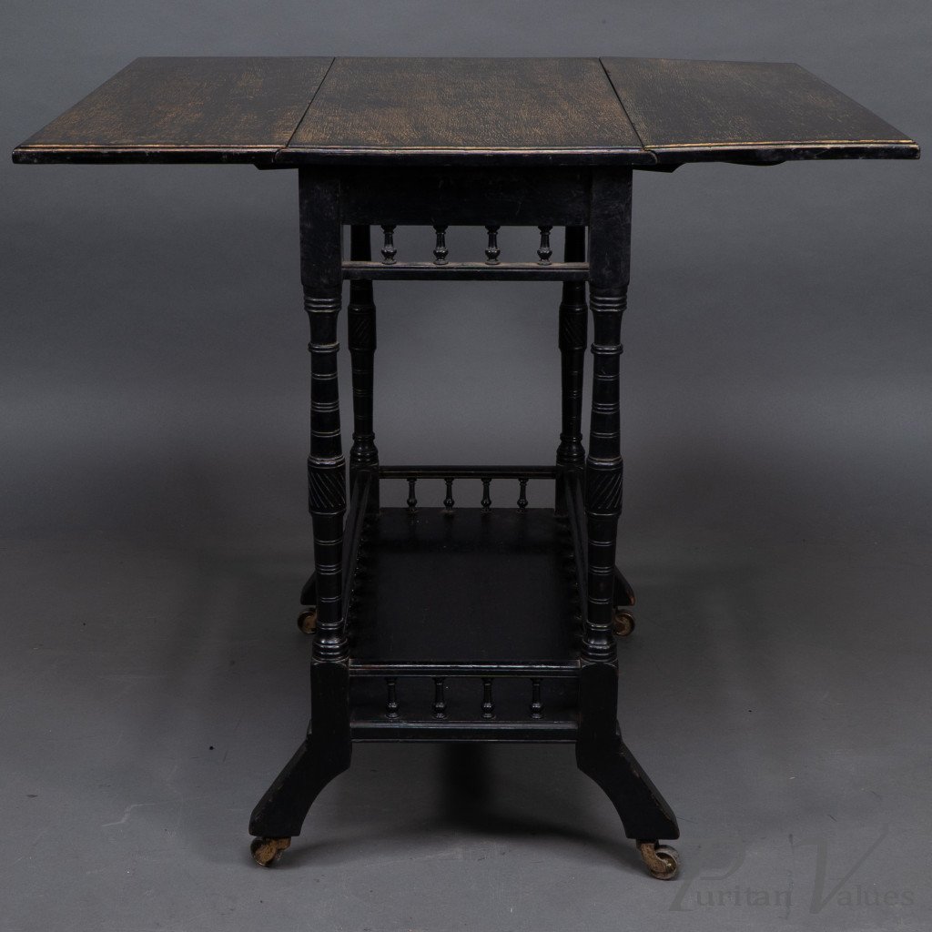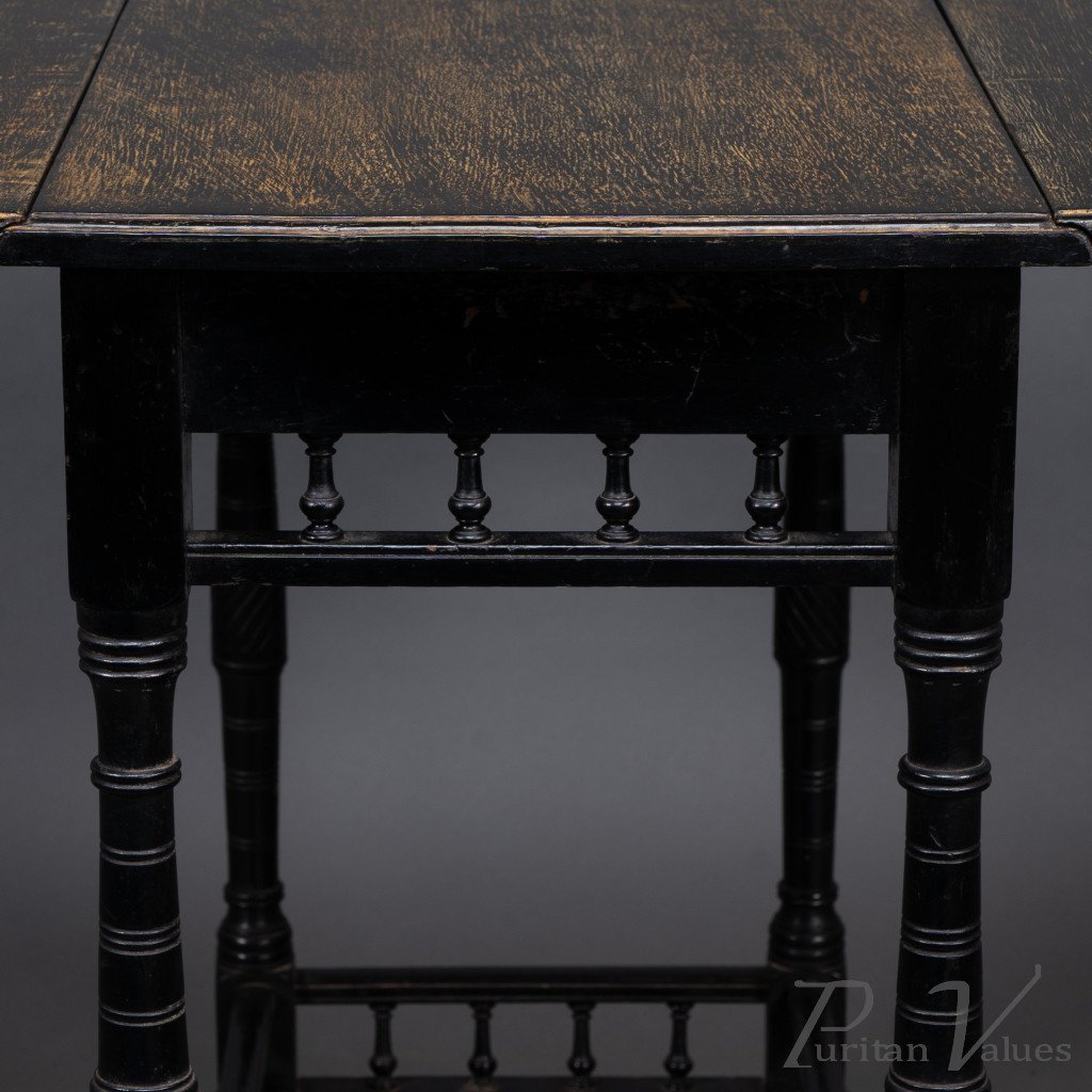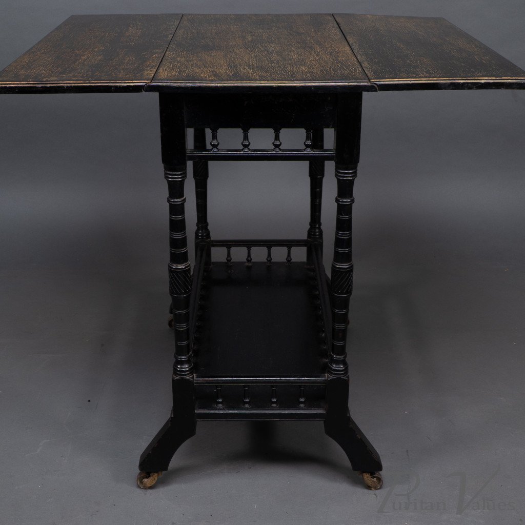 An Aesthetic Movement Walnut Drop Leaf Side Table on Four Turned & Incised Legs