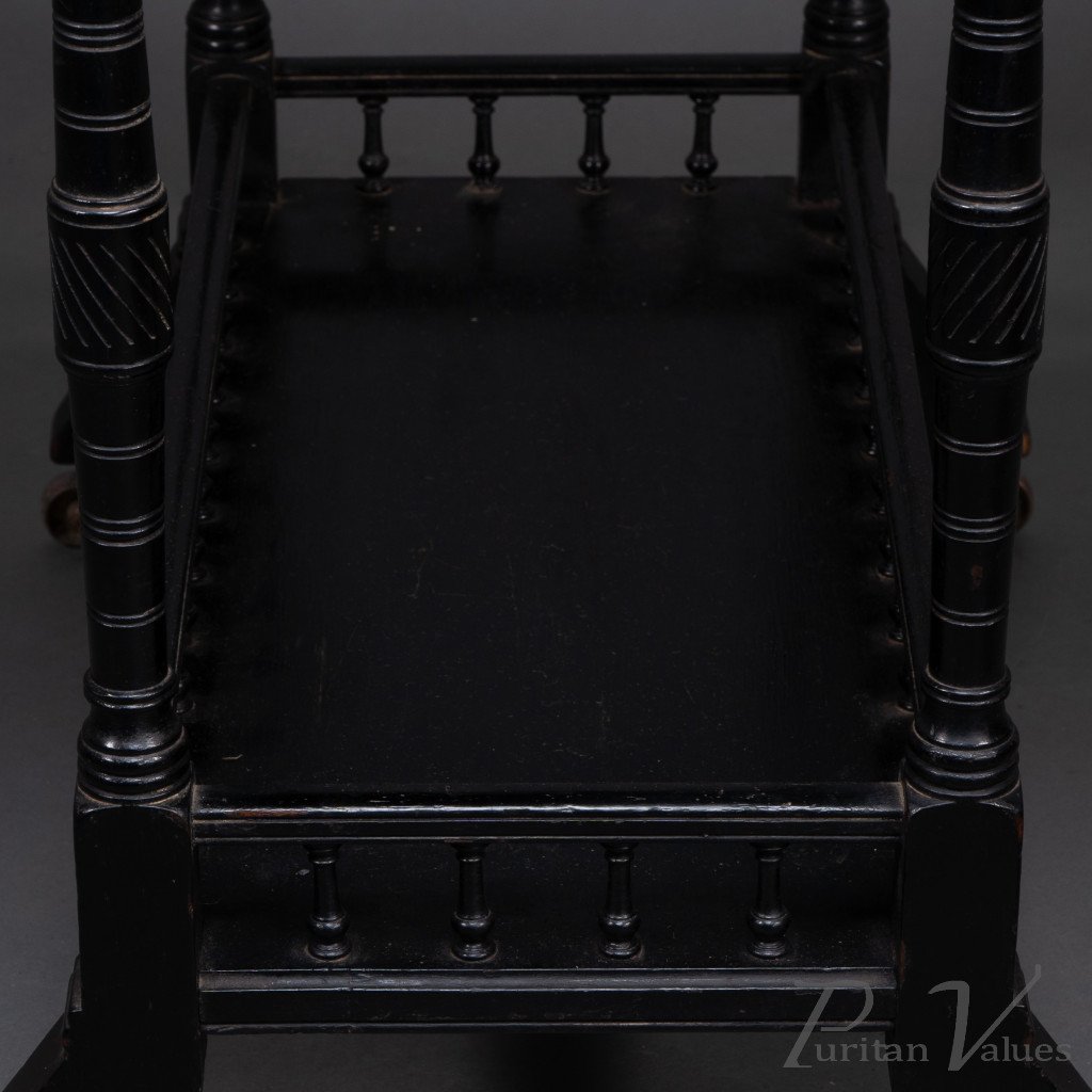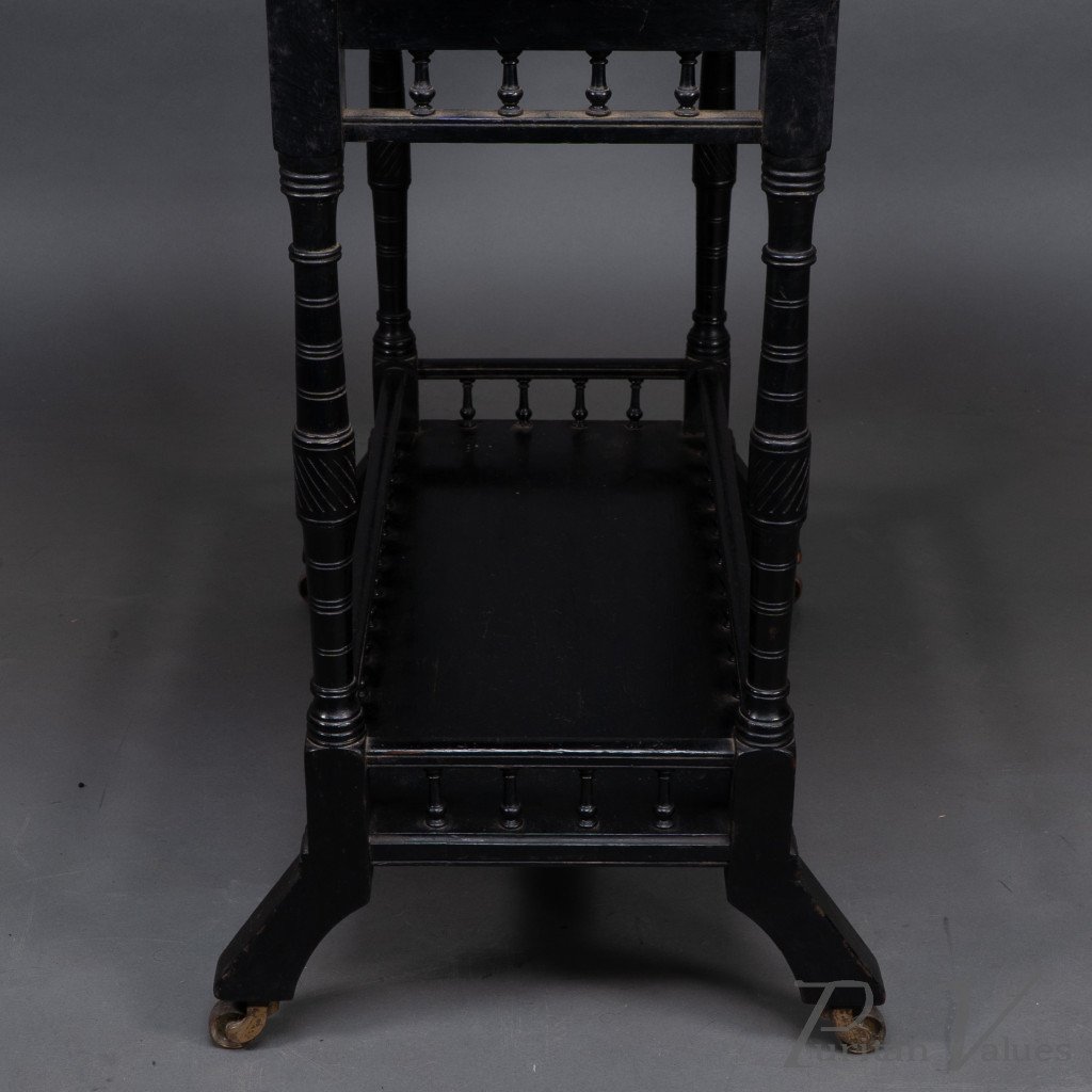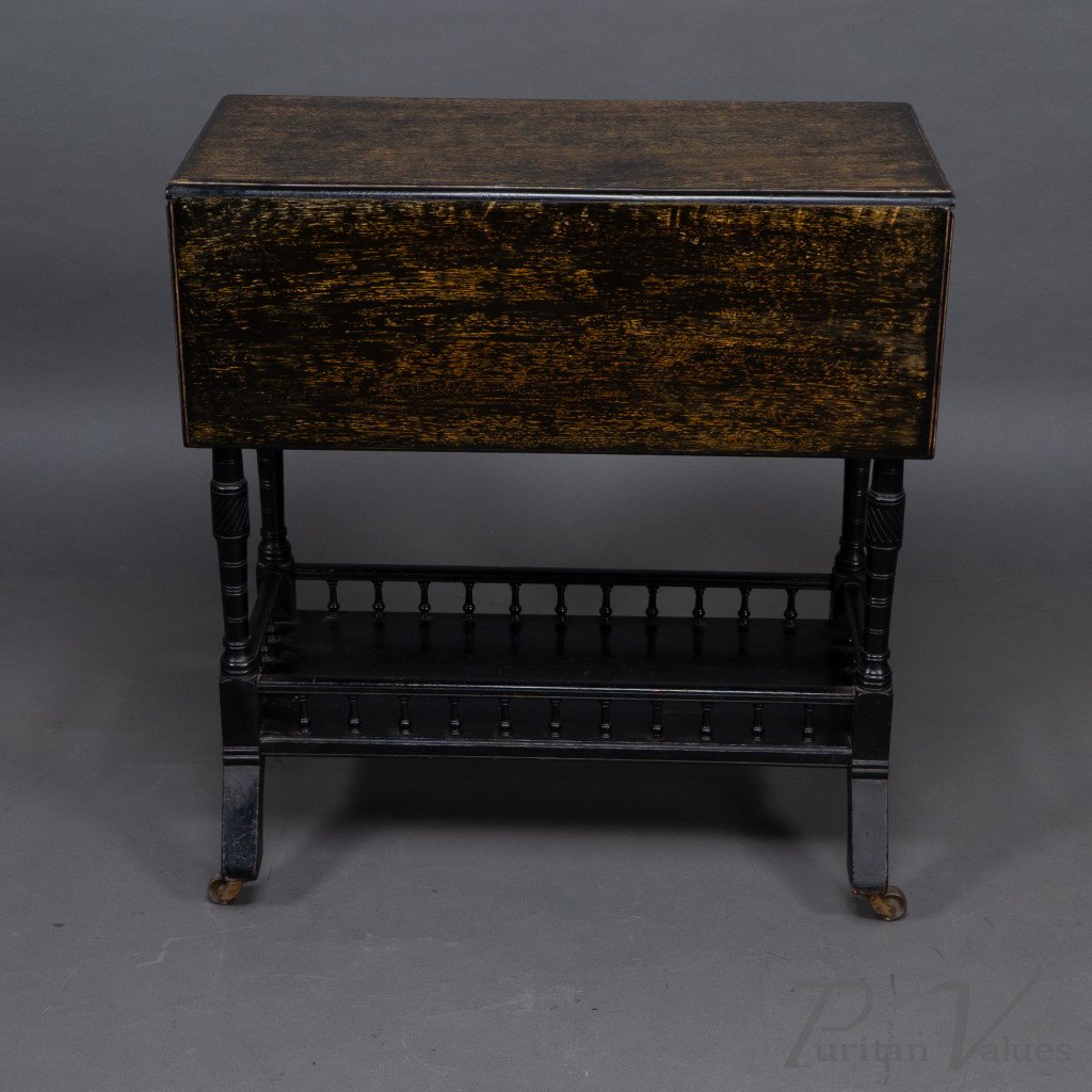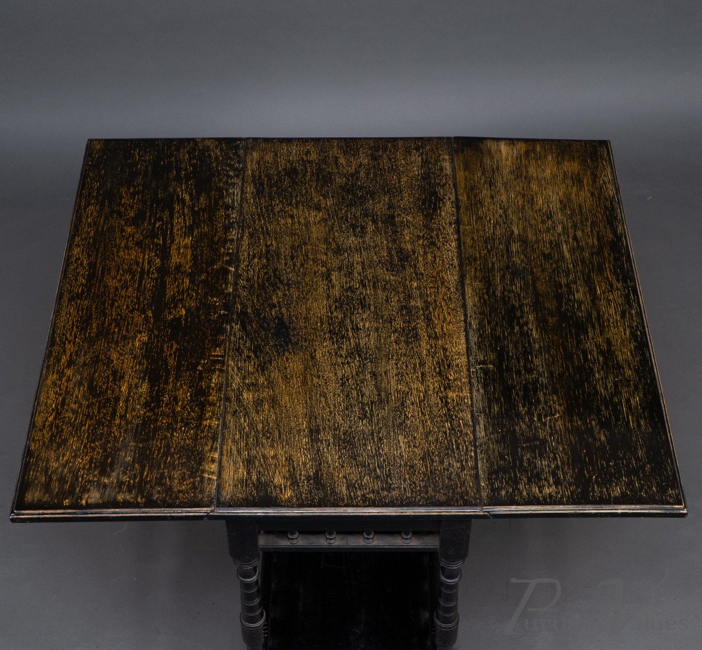 An Aesthetic Movement Walnut Drop Leaf Side Table on Four Turned & Incised Legs