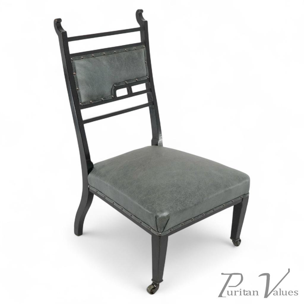 An Anglo-Japanese Ebonized Side or Nursing Chair with Green Hide Upholstery