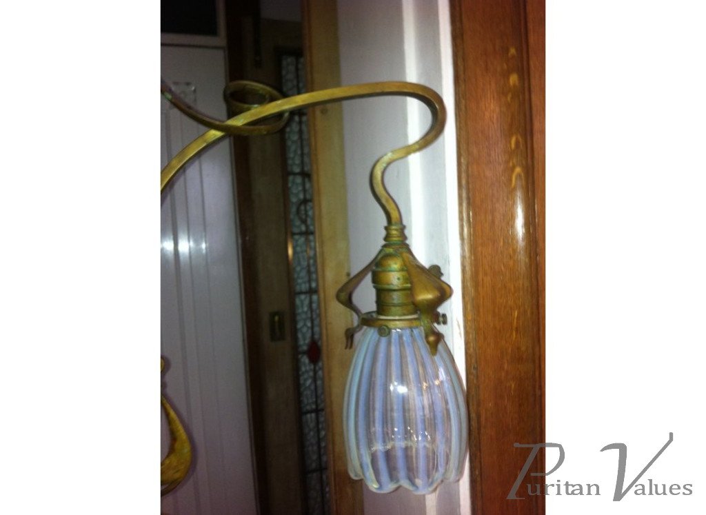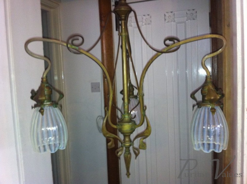 An Art Nouveau Chandelier Retaining the Original Vaseline Shades