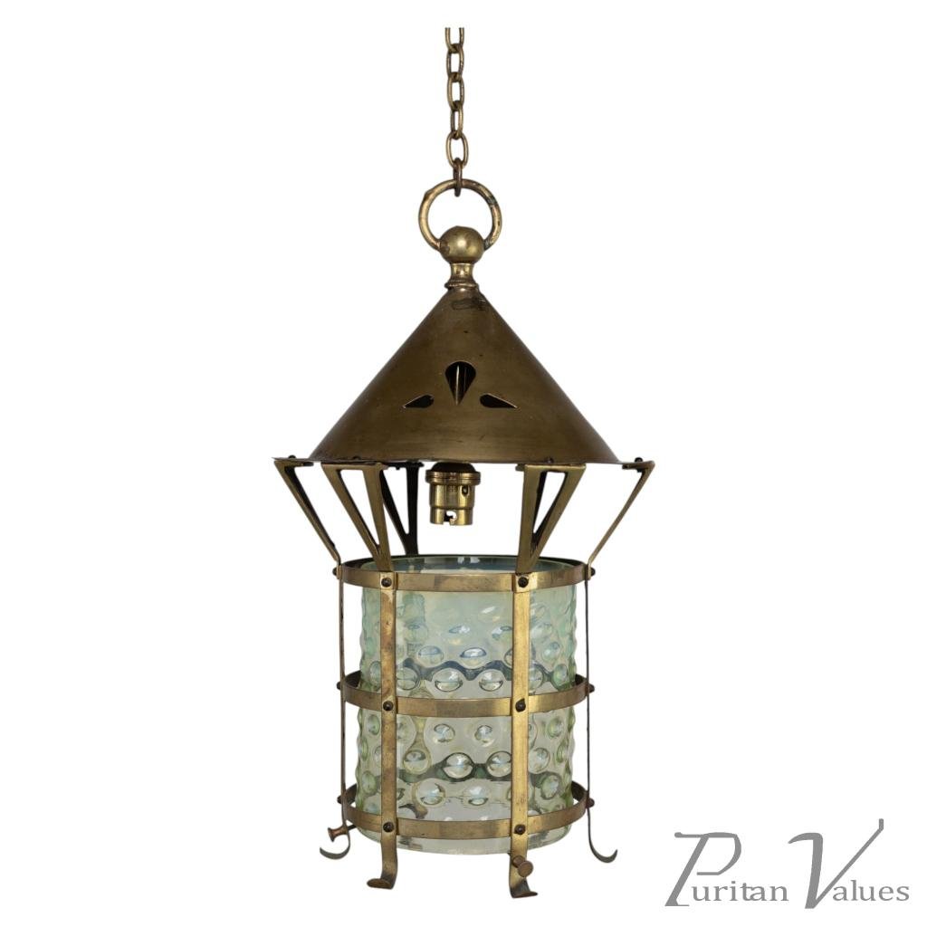 An Arts & Crafts Brass Lantern with the Original Vaseline Shade