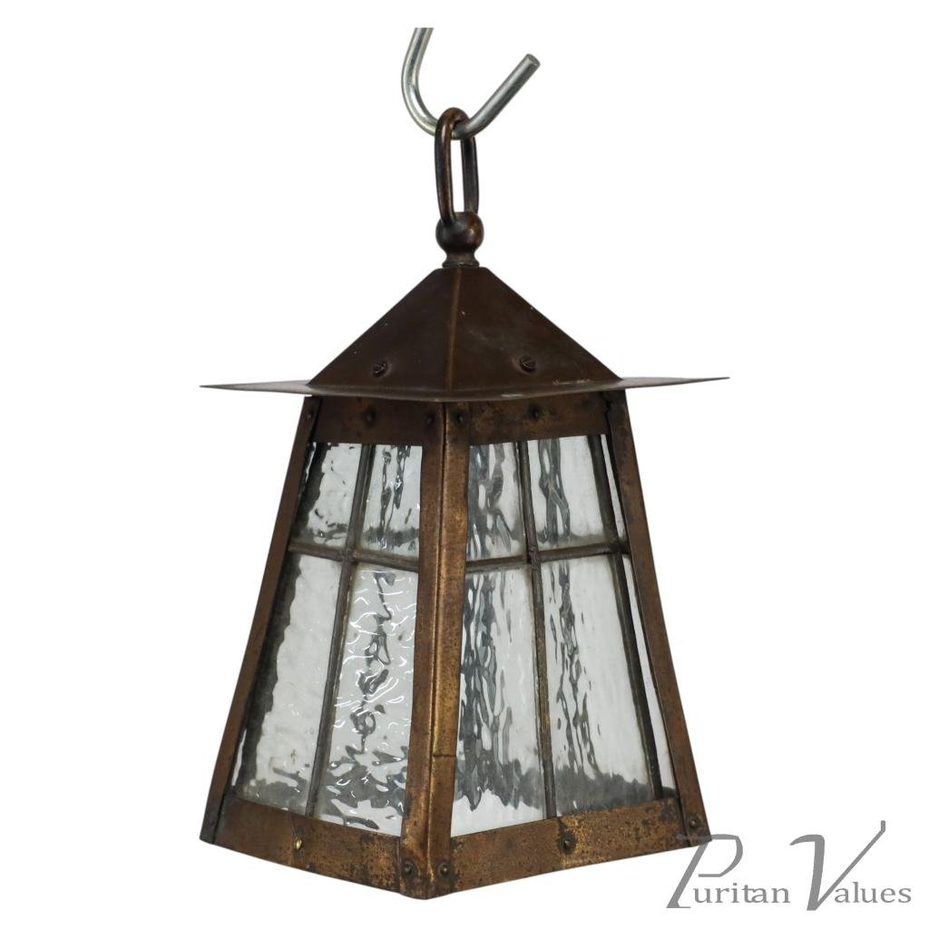 An Arts and Crafts little copper lantern with the original opaque shade