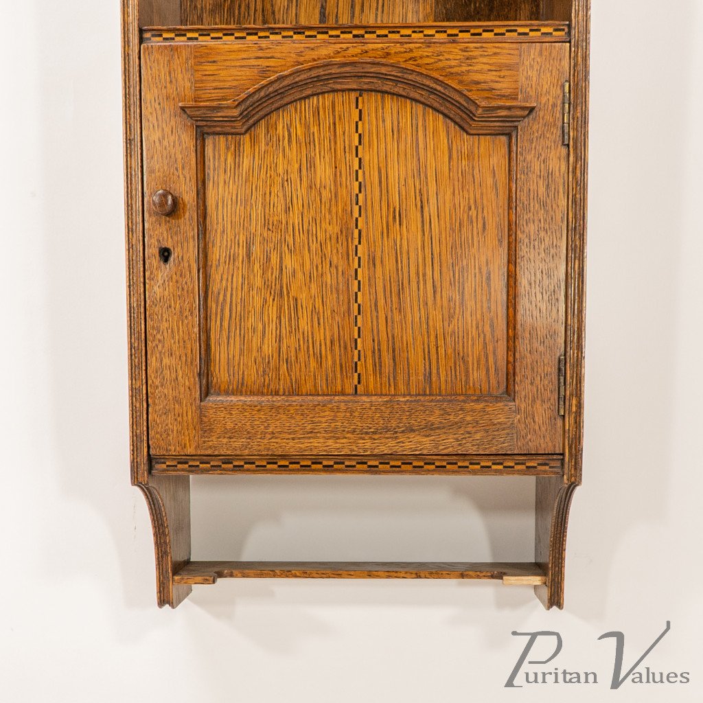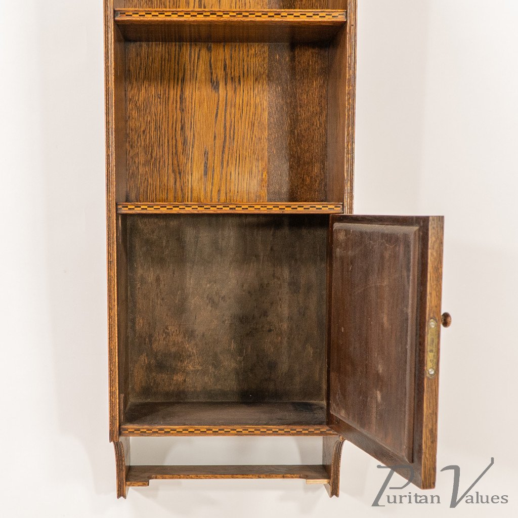 An Arts & Crafts Oak & Chequer Inlaid Wall Cabinet