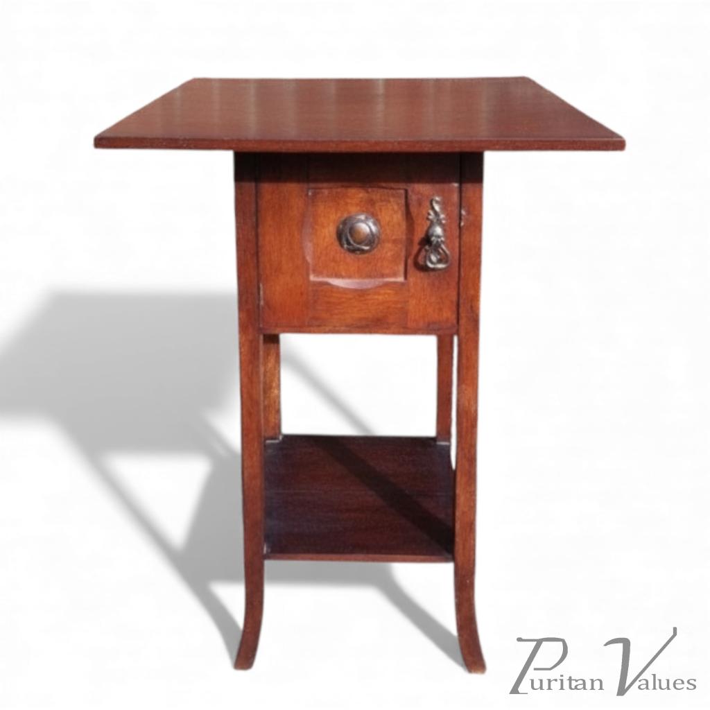 An Arts and Crafts oak bedside cabinet in the Glasgow style