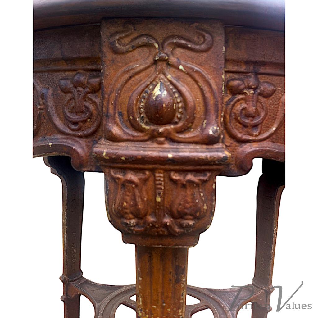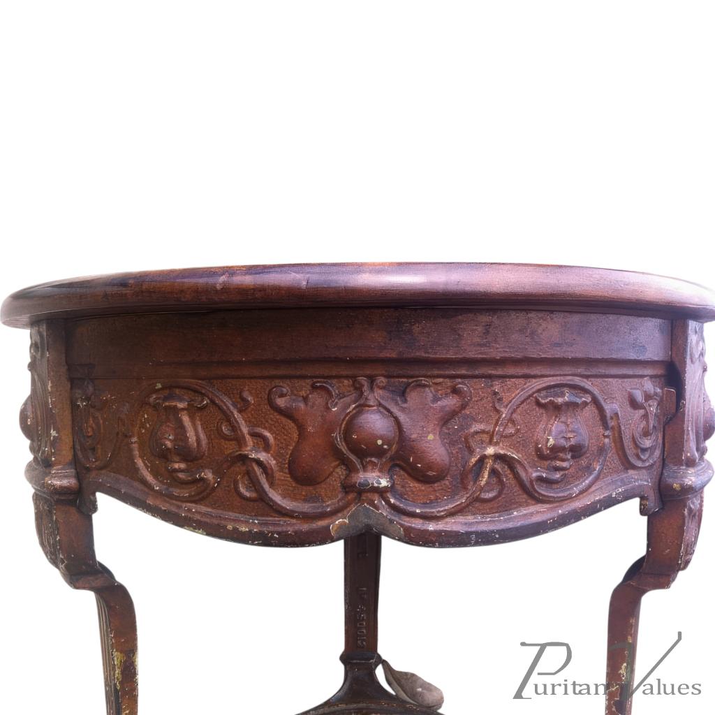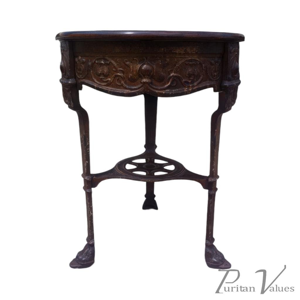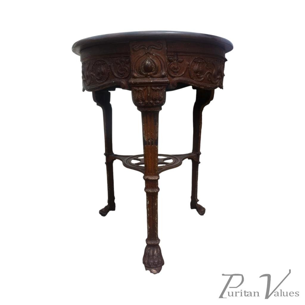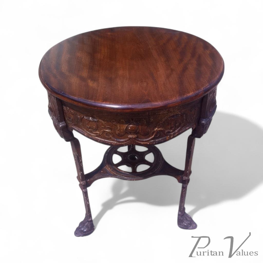 An Arts & Crafts/Art Nouveau Cast Iron Circular Side Table with a Solid Walnut Top