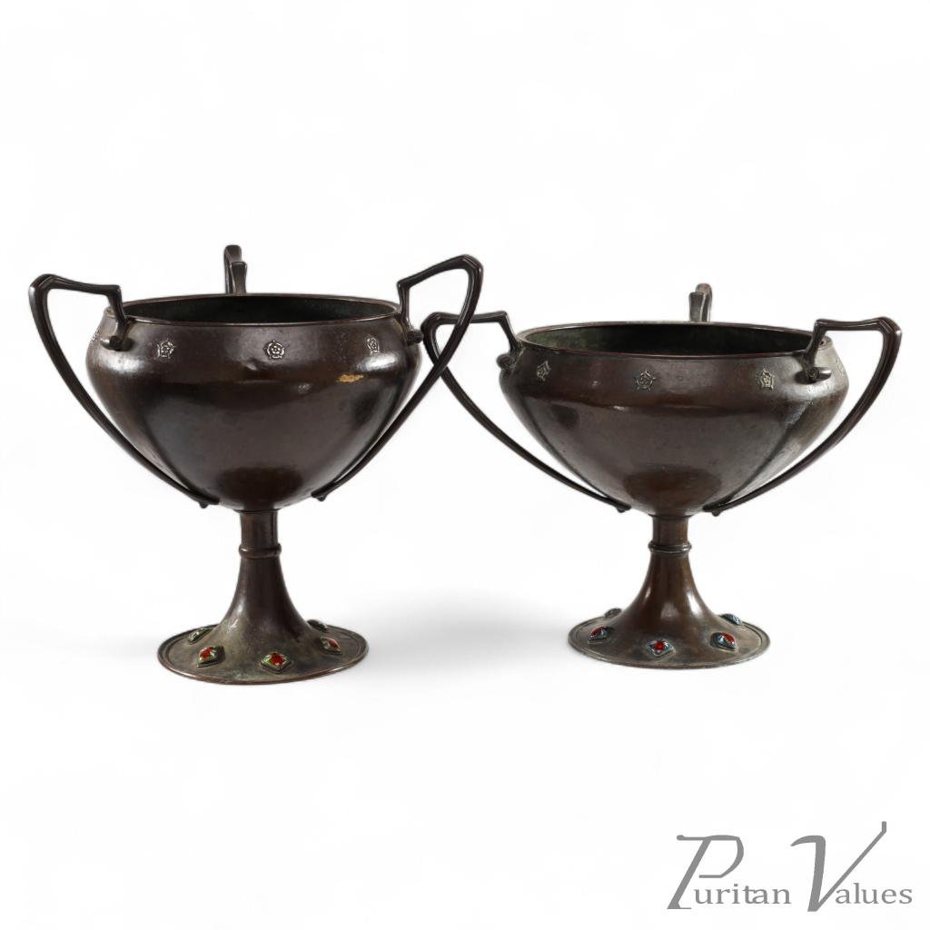 Arthur Dixon for the Birmingham Guild of Handicraft. Two Arts & Crafts Hand Hammered Copper Centerpieces