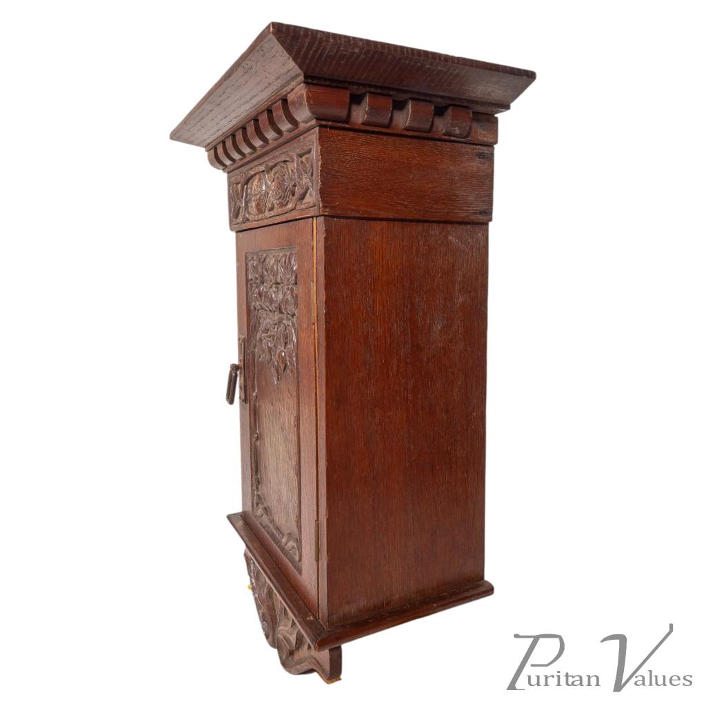 Arts & Crafts Carved Oak Wall Cabinet