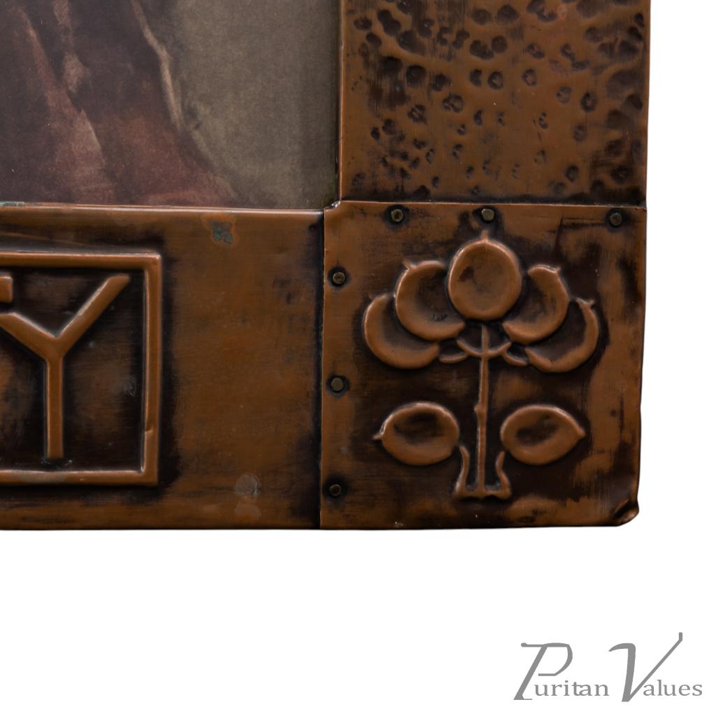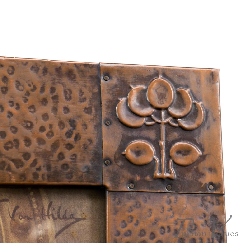 Arts and Crafts Hammered Copper Frame with Pre-Raphaelite Maiden