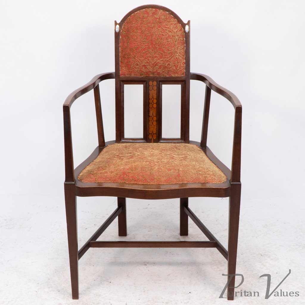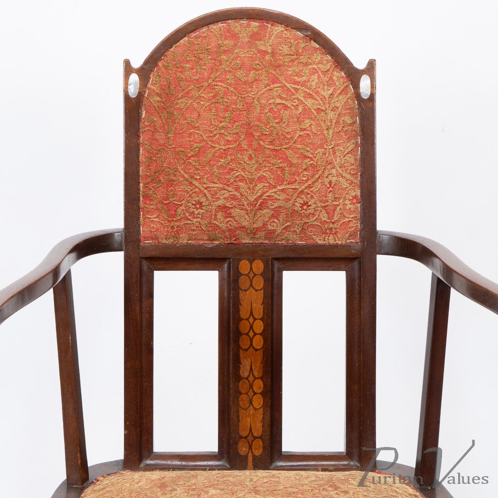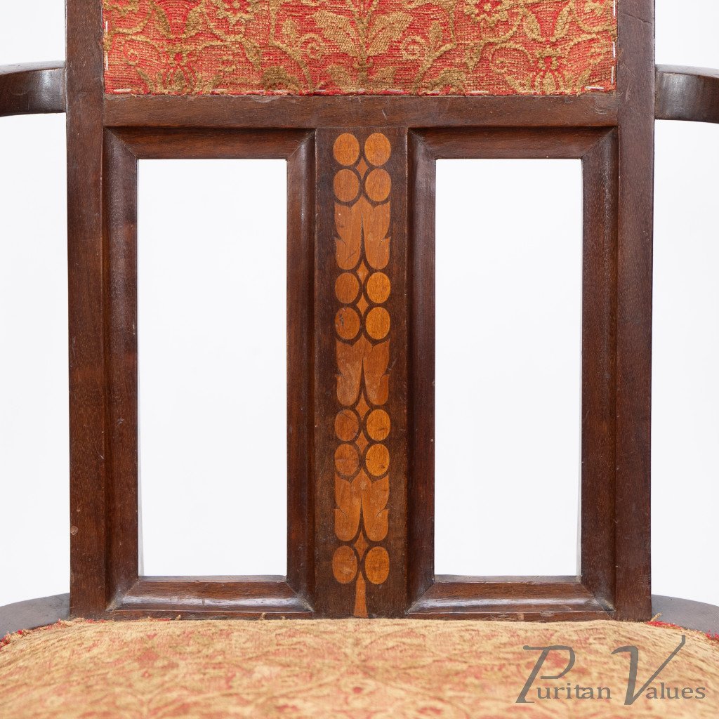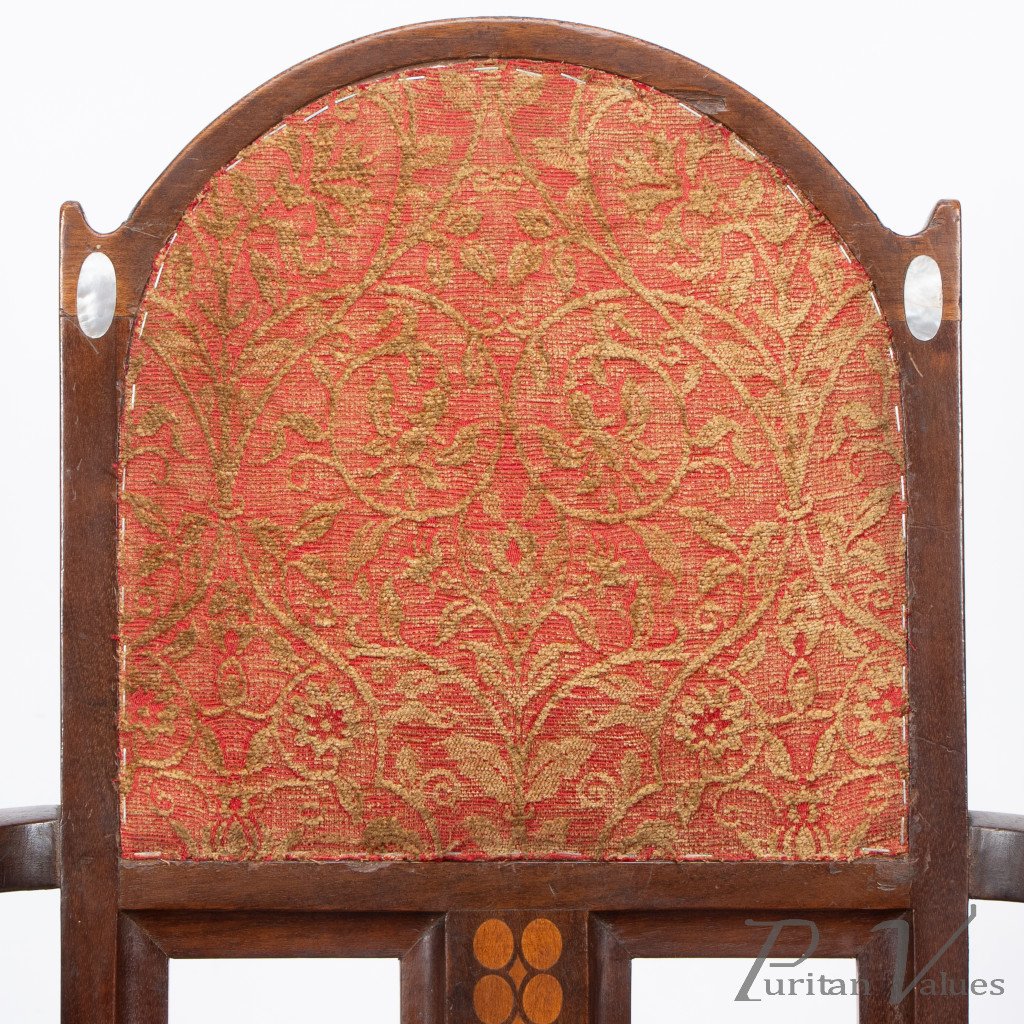 G. M. Ellwood for J. S. Henry. Arts & Crafts Armchair with Mother-of-pearl Inlays