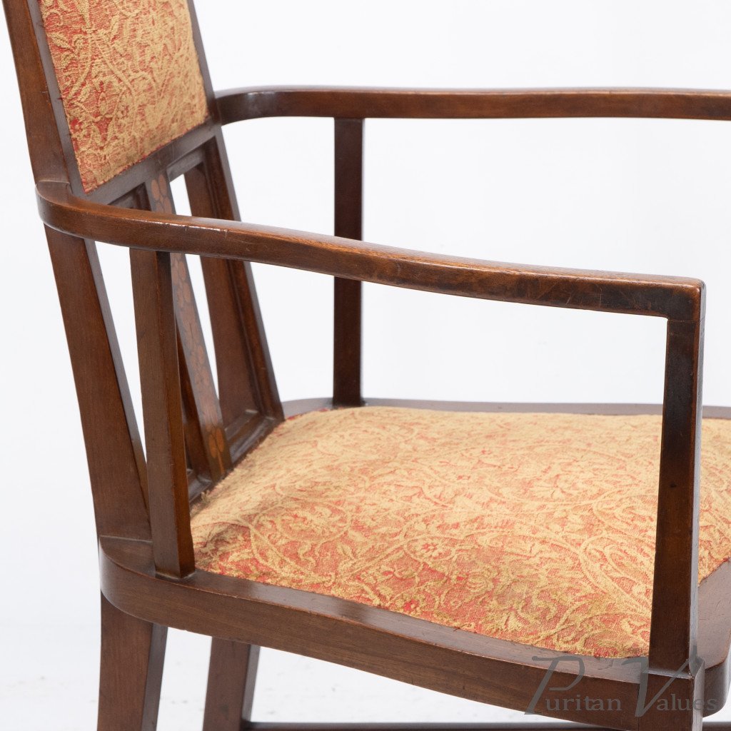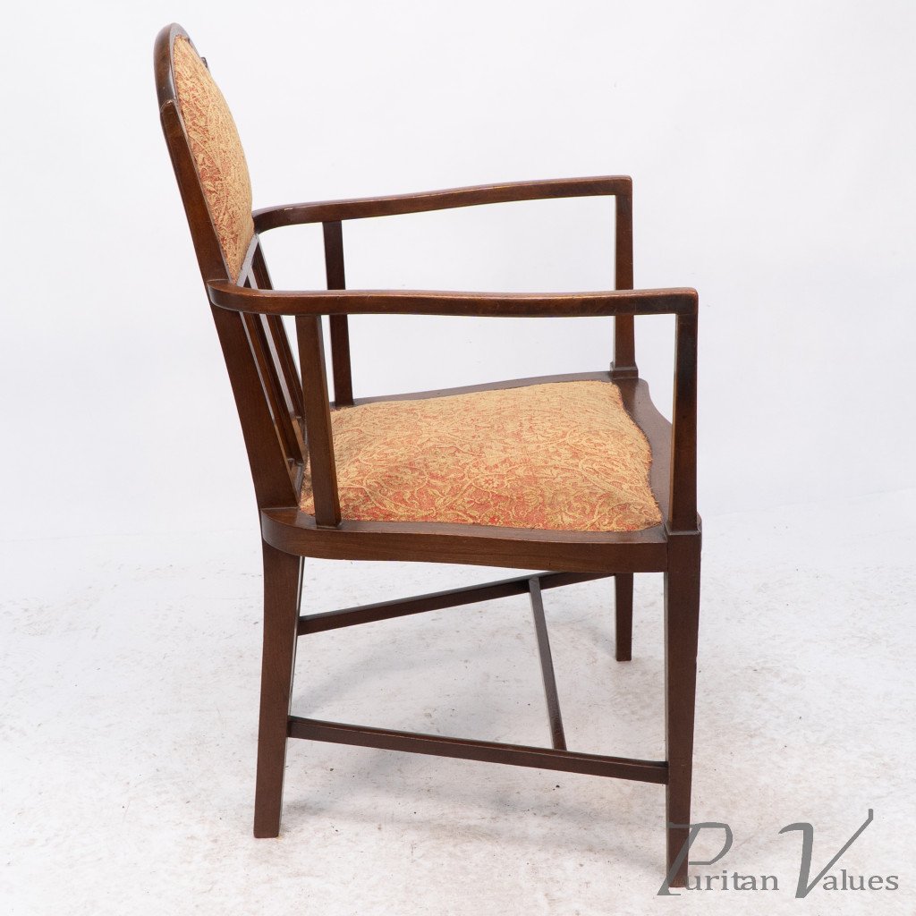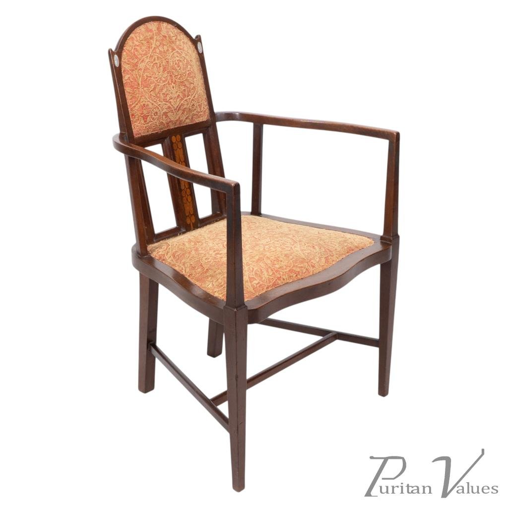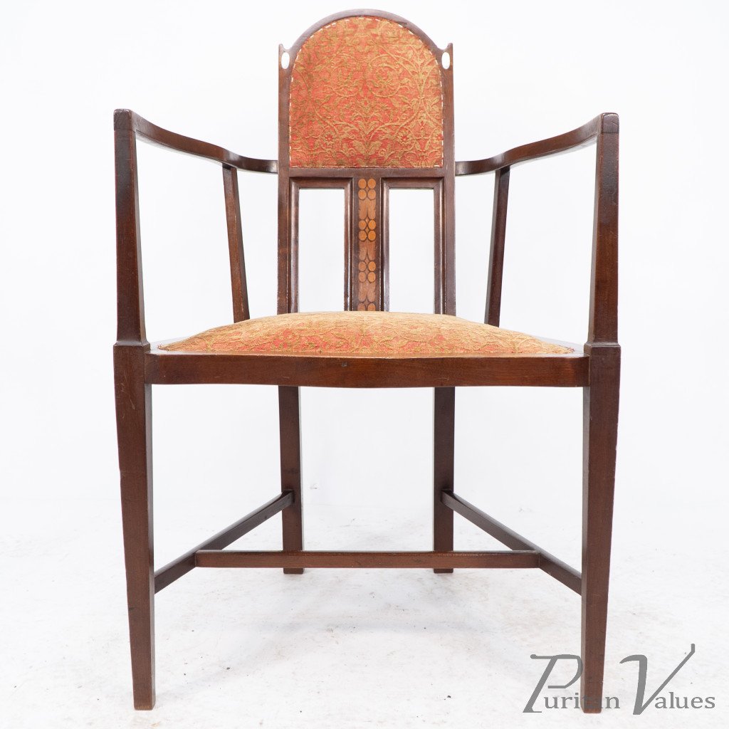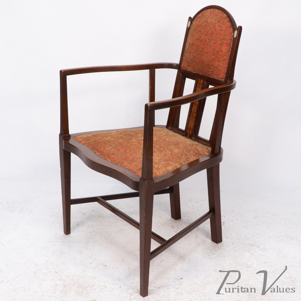 G. M. Ellwood for J. S. Henry. Arts & Crafts Armchair with Mother-of-pearl Inlays