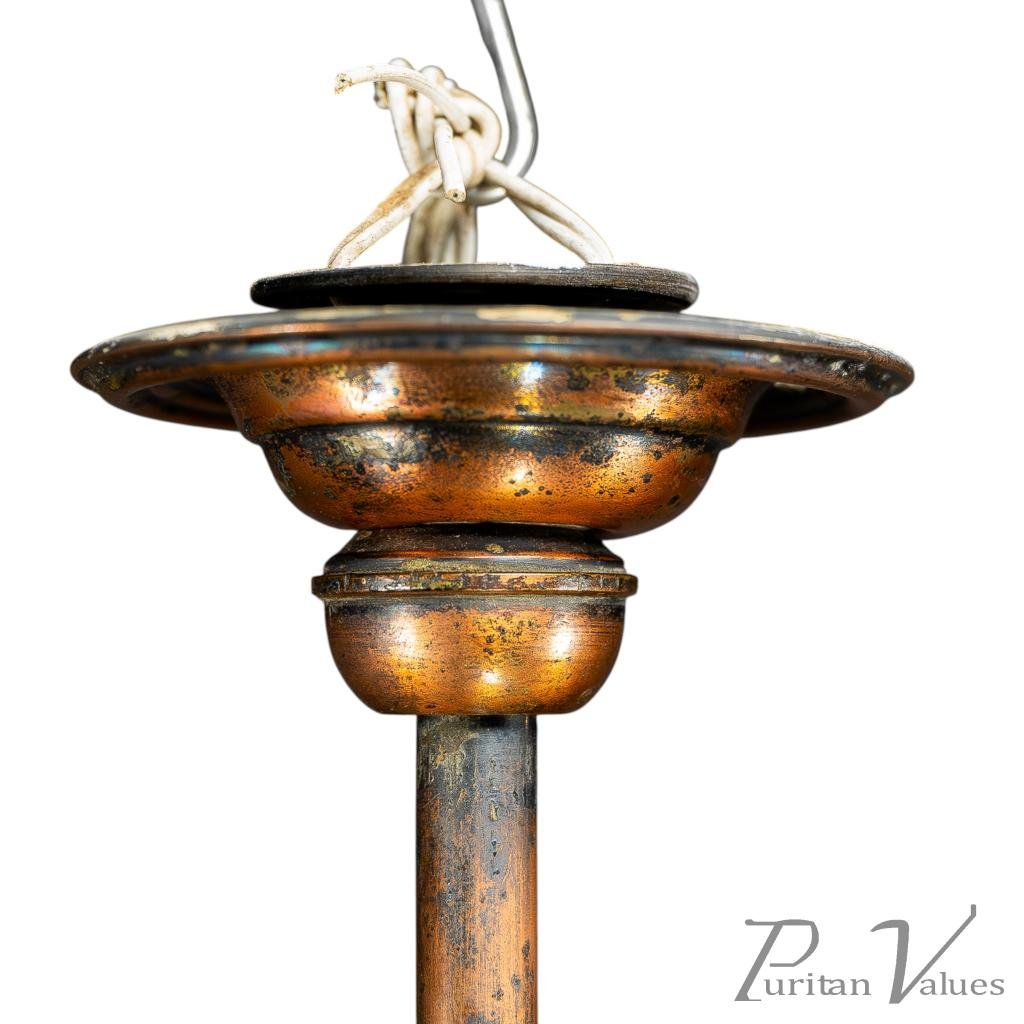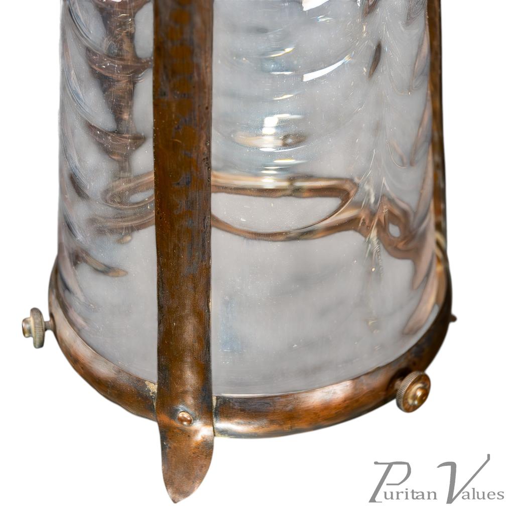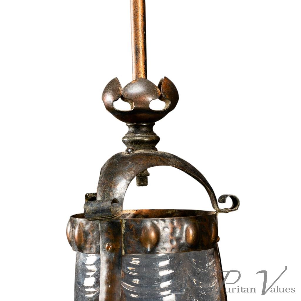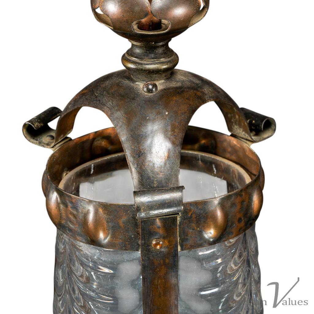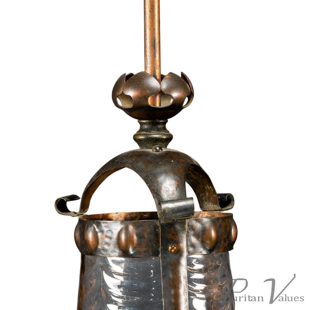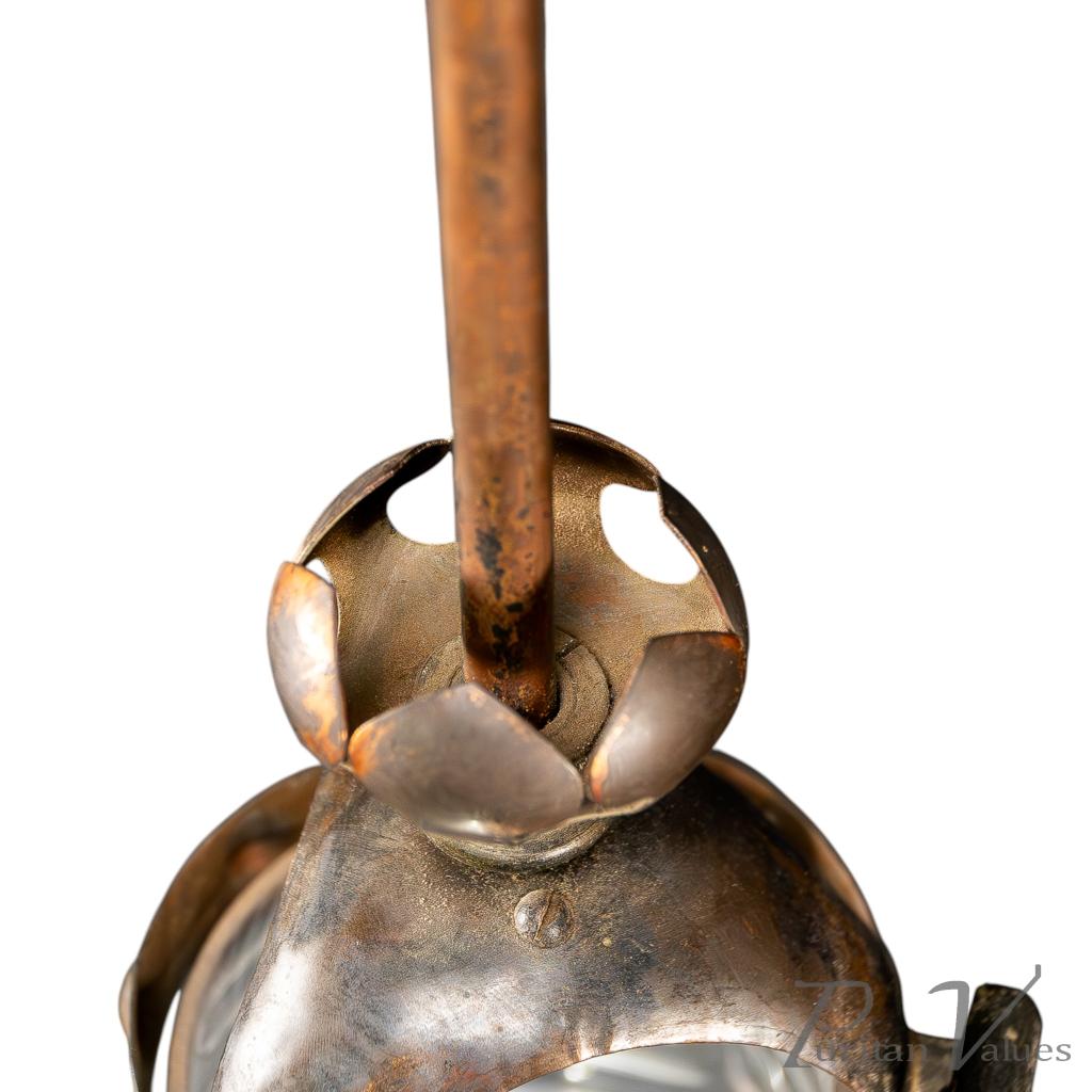 Arts & Crafts Copper Lantern Retaining the Original Ribbed Style Opaque Shade