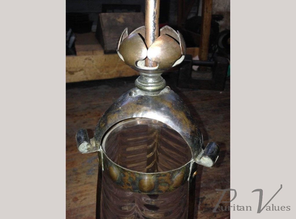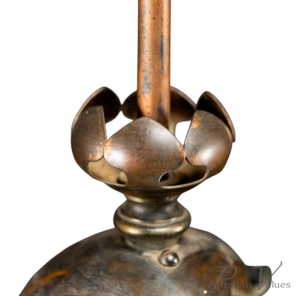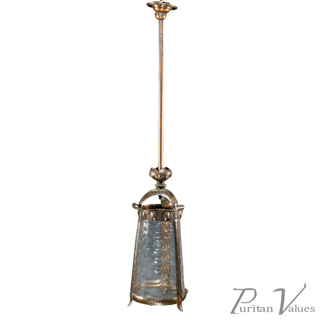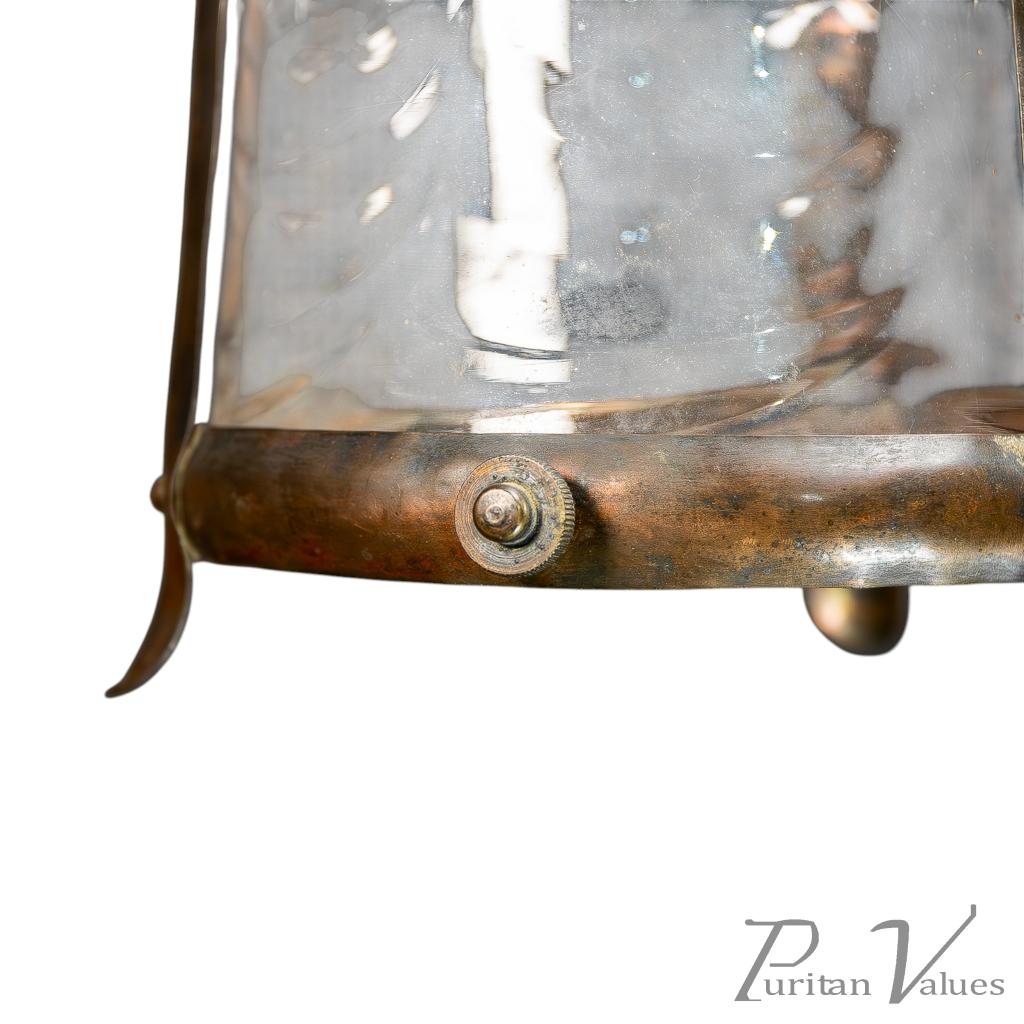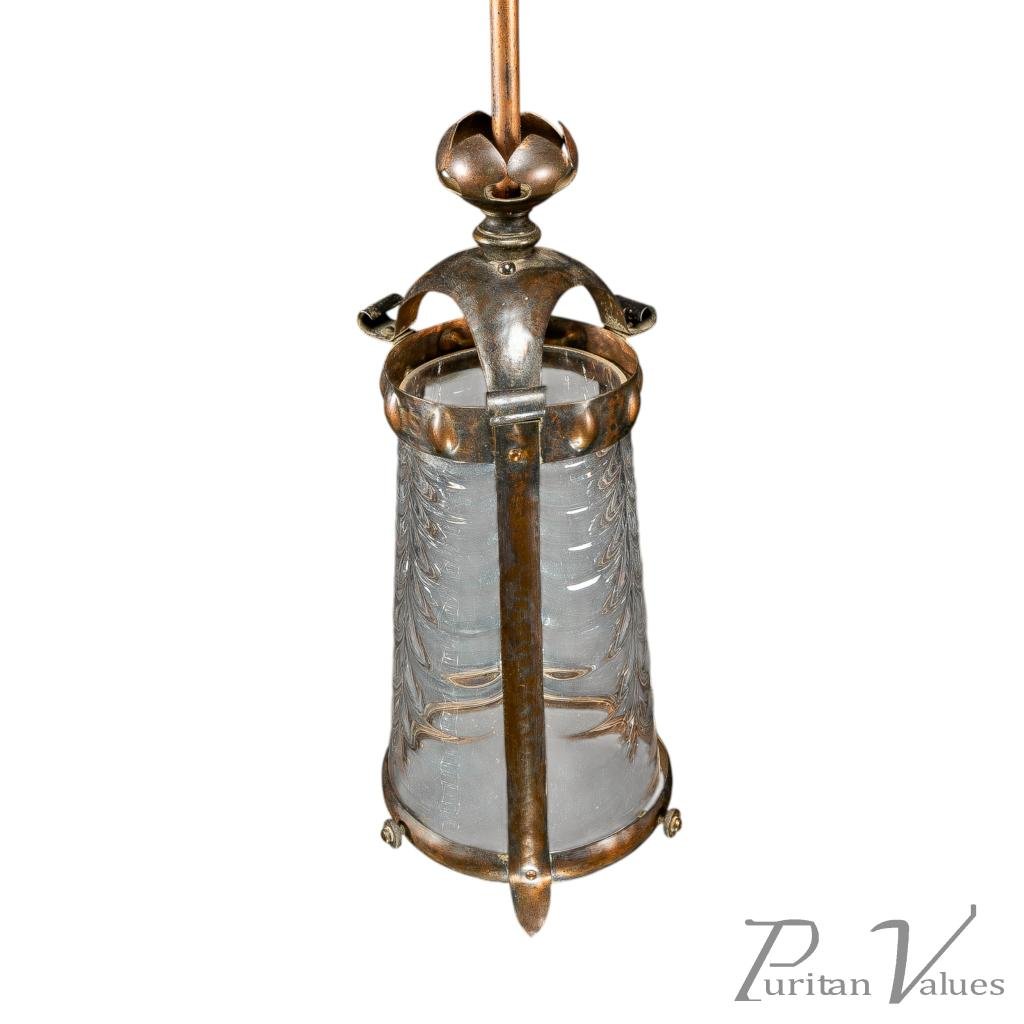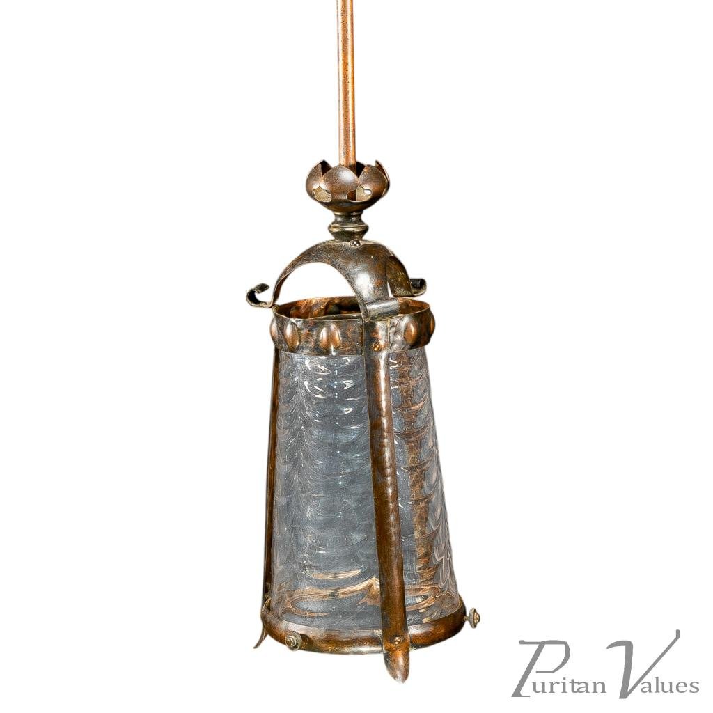 Arts & Crafts Copper Lantern Retaining the Original Ribbed Style Opaque Shade
