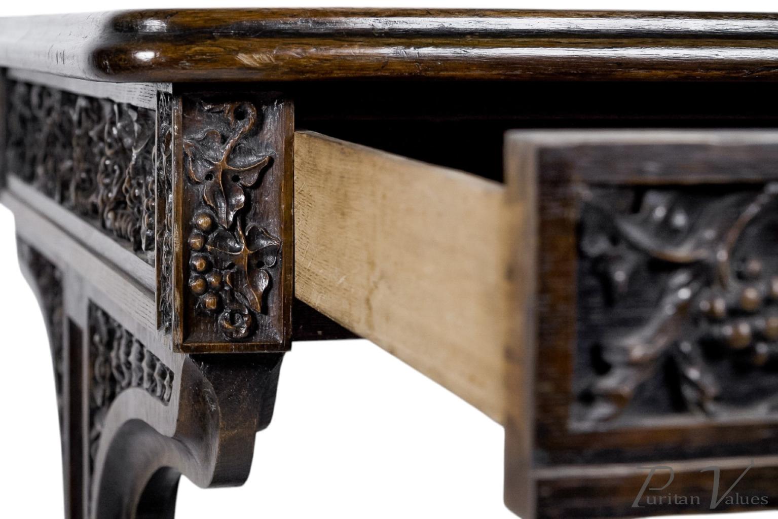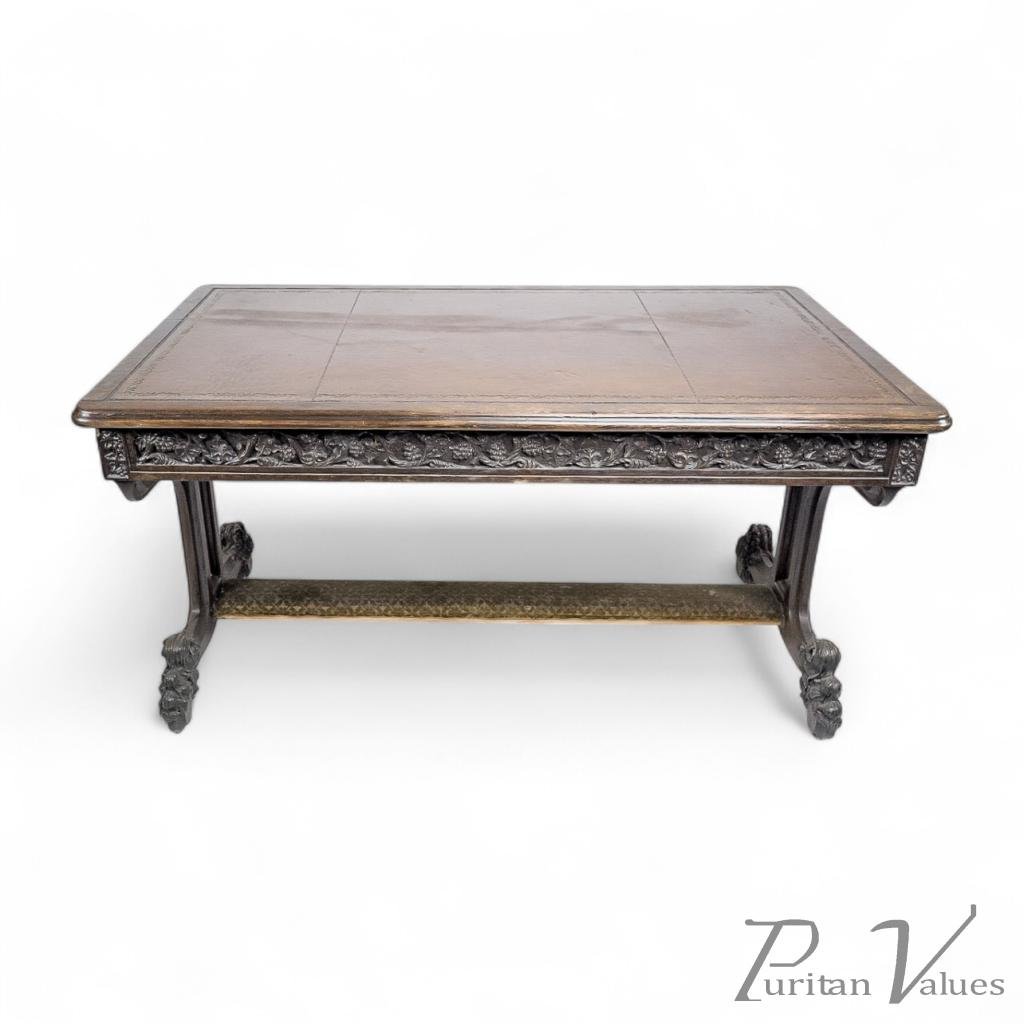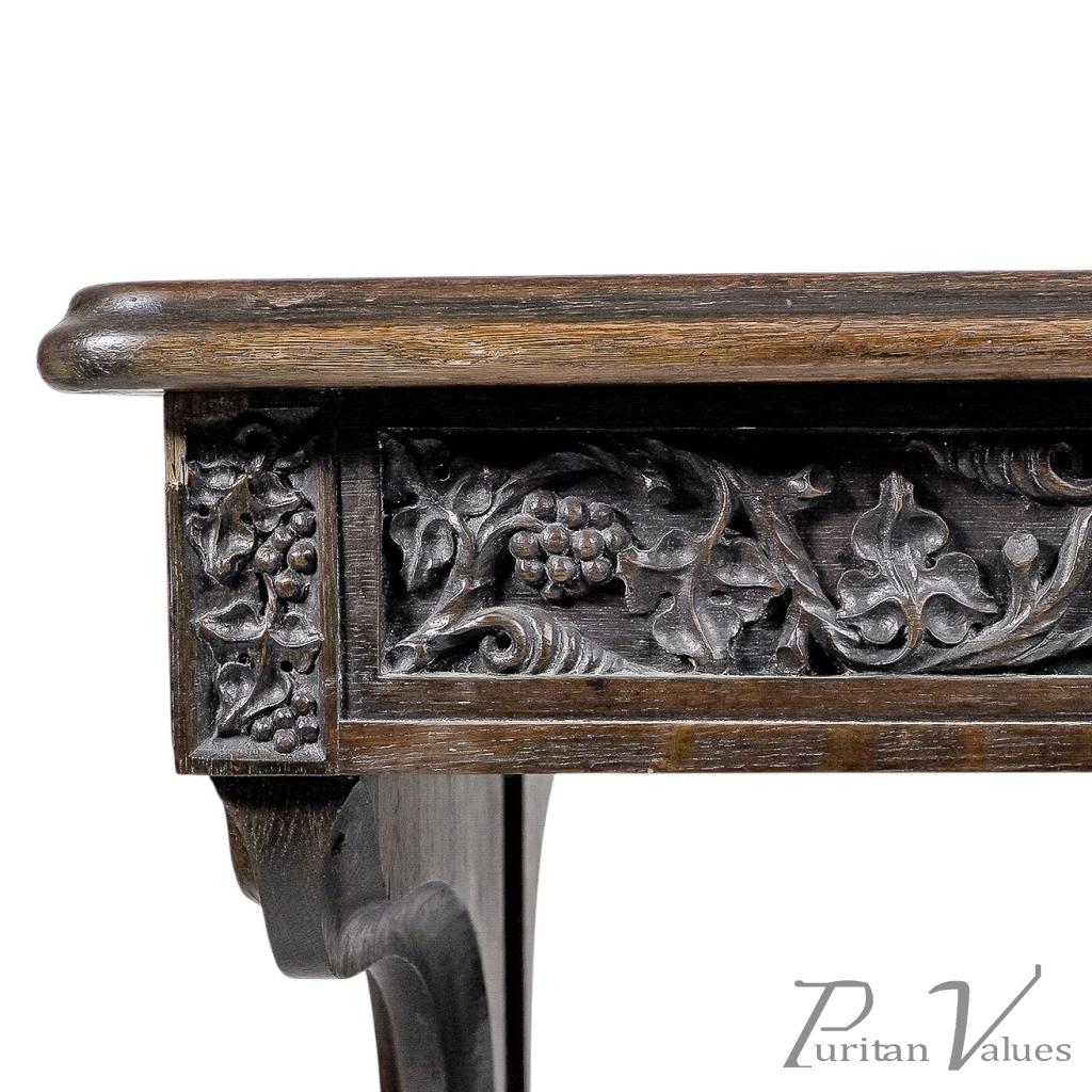 A rare and important Gothic Revival carved oak library table. Probably one of the earliest known pieces to derive from the illustrious relationship with Sir Charles Barry, some five years before they began work on the Houses Of Parliament together.