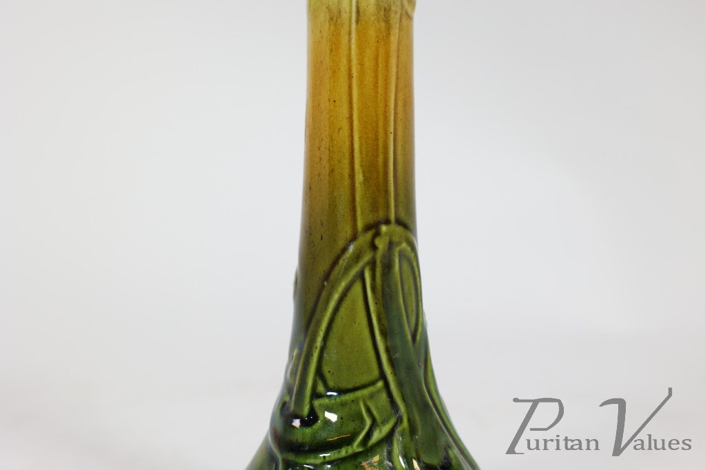 Bretby Pottery Attributed. a Green and Yellow Glaze Candlestick