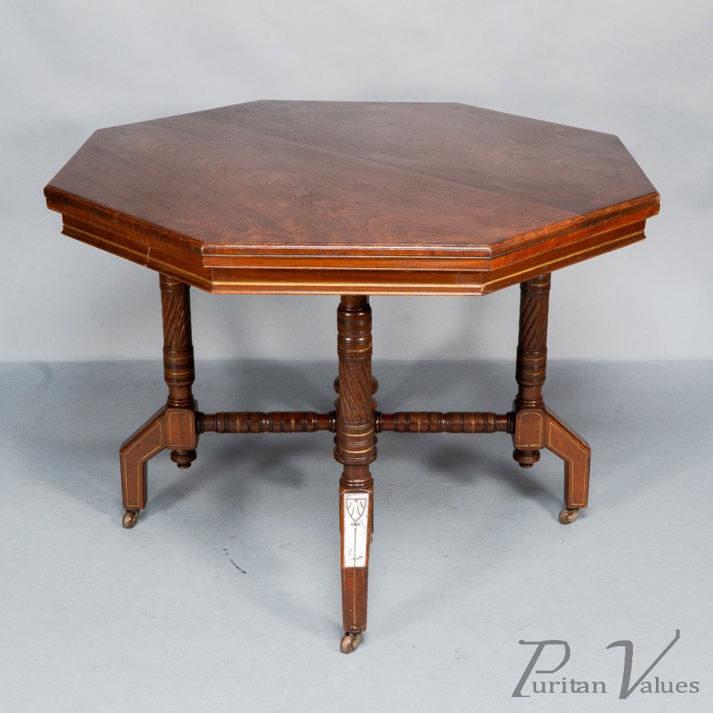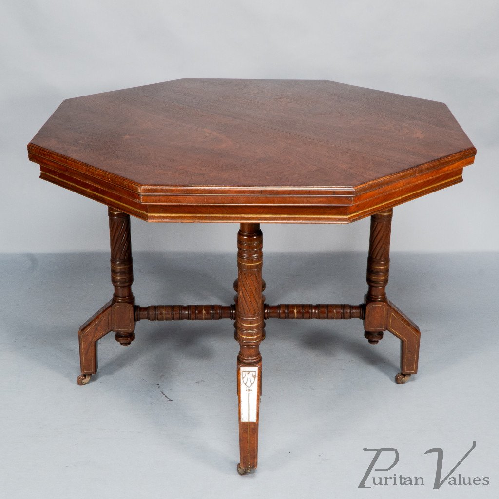 Bruce Talbert, in the Style Of. An Aesthetic Movement Walnut & Gilt Octagonal Centre Table