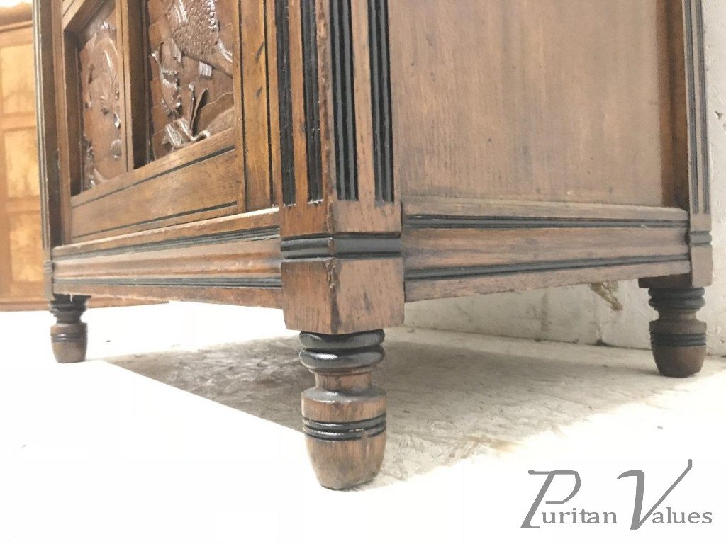 Charles Bevan, Gillows & Co. an Aesthetic Oak Cabinet with Carved Birds & Fish