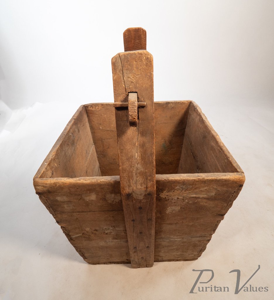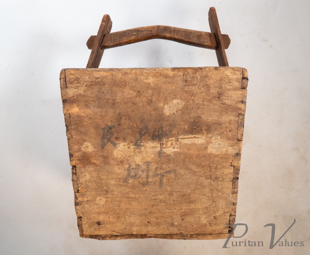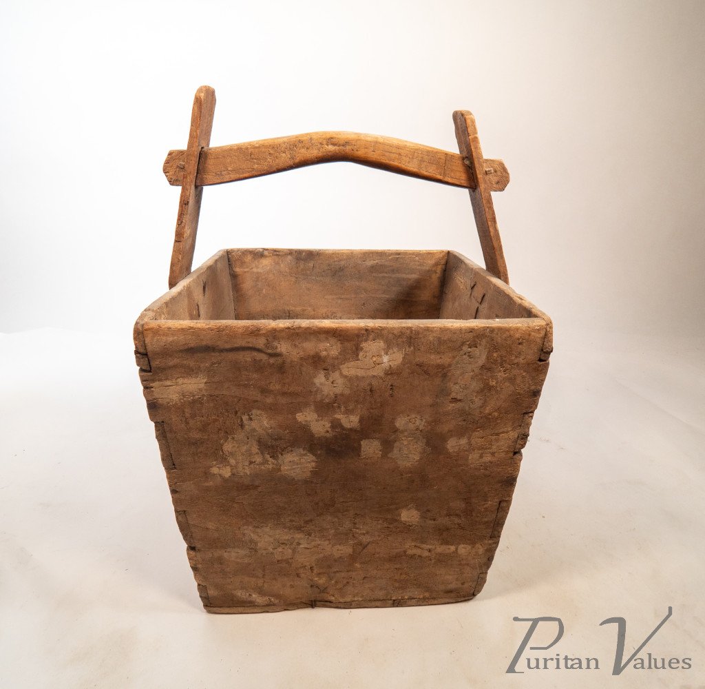 Chinese Antique Wooden Handled Bucket Originally Used to Carry & Measure Rice