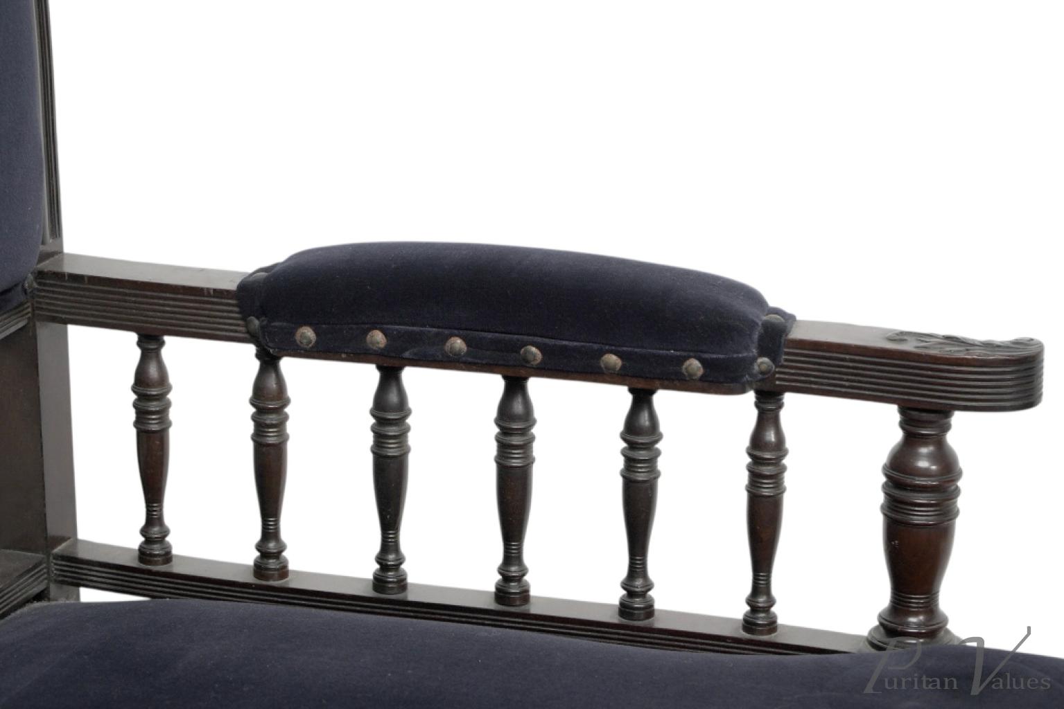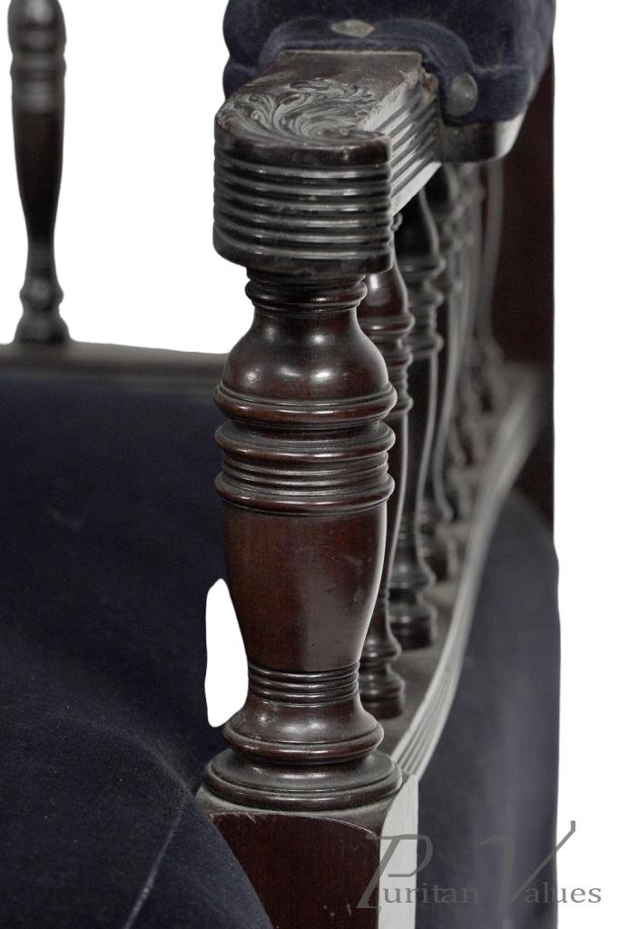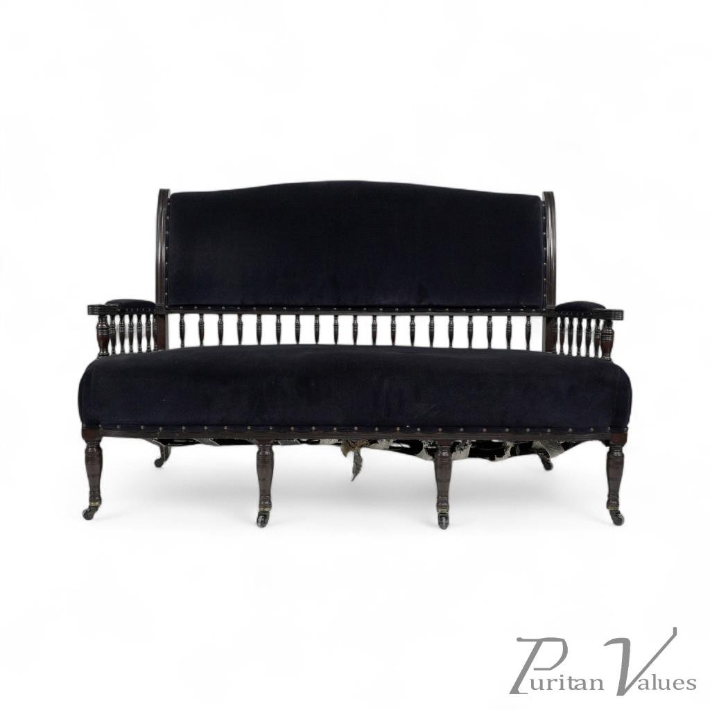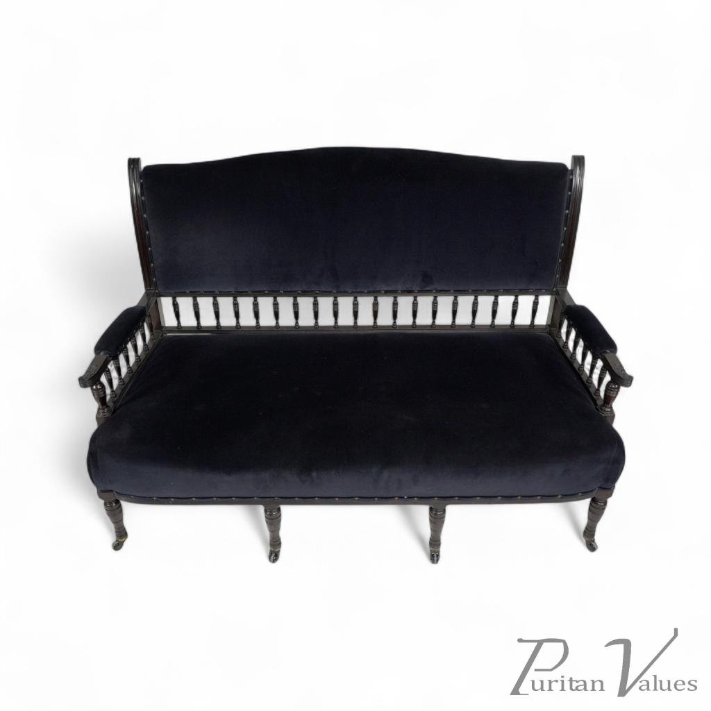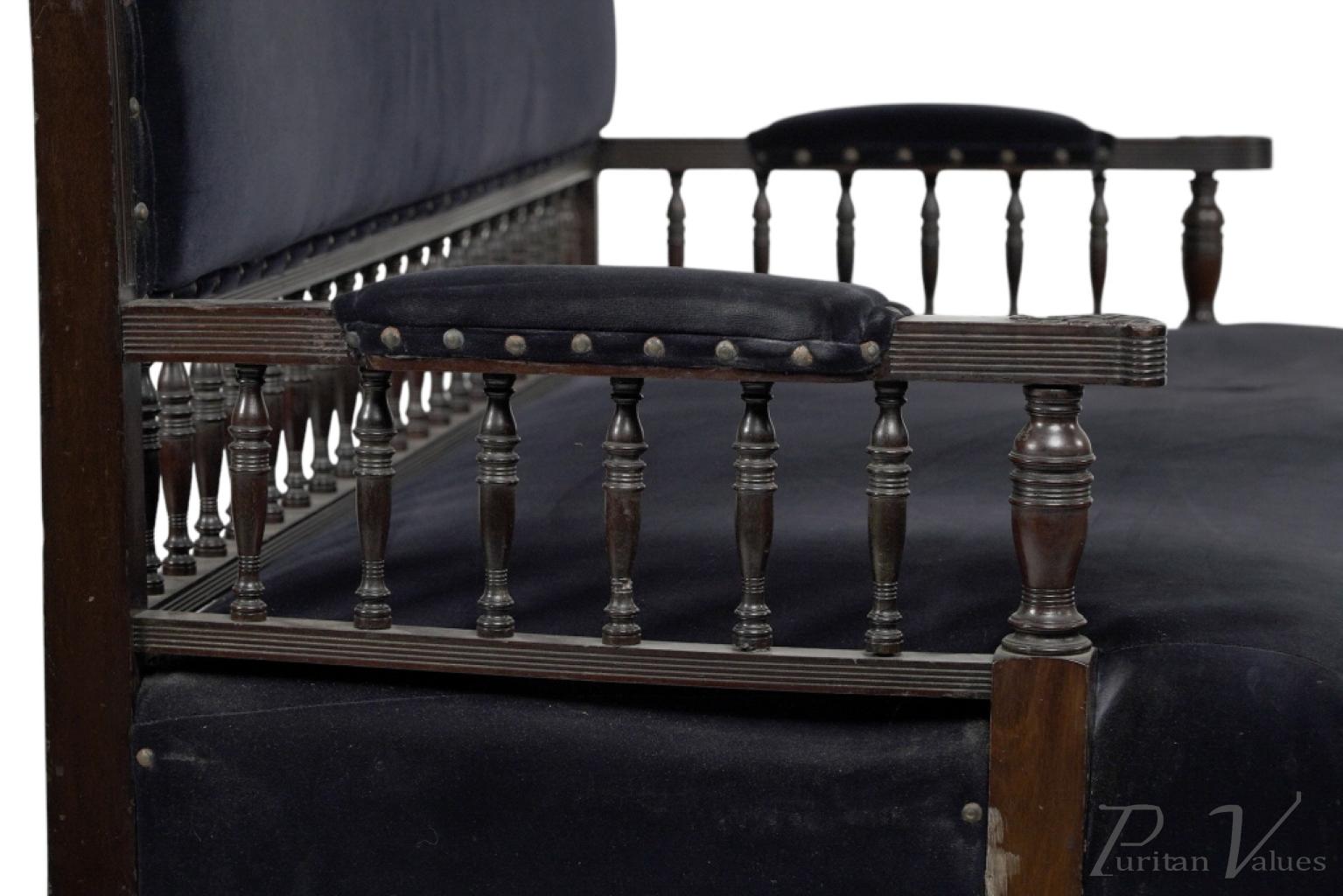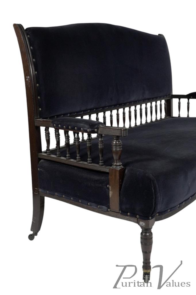 Collinson & Lock. An Anglo-Japanese Mahogany Settee with Carved & Scrolled Arms