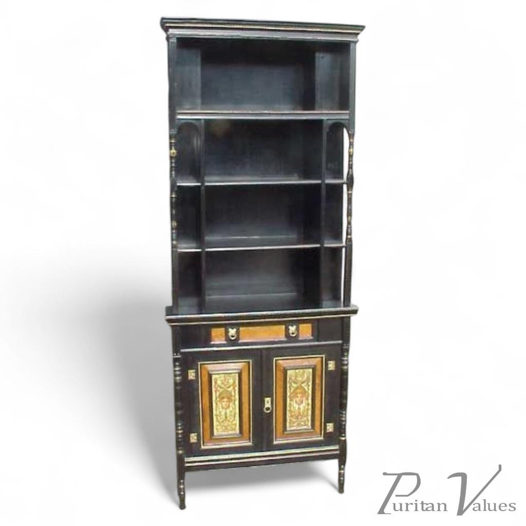 Daniel Cottier (attributed). An impressive Aesthetic Movement ebonised cabinet for semi-fixing