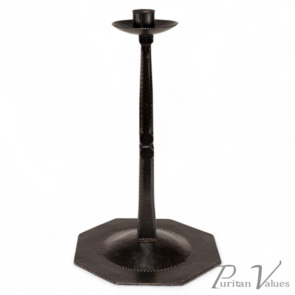 Designed by Ernest Gimson. A Rare Tall Steel Candlestick Made by Alfred Bucknell